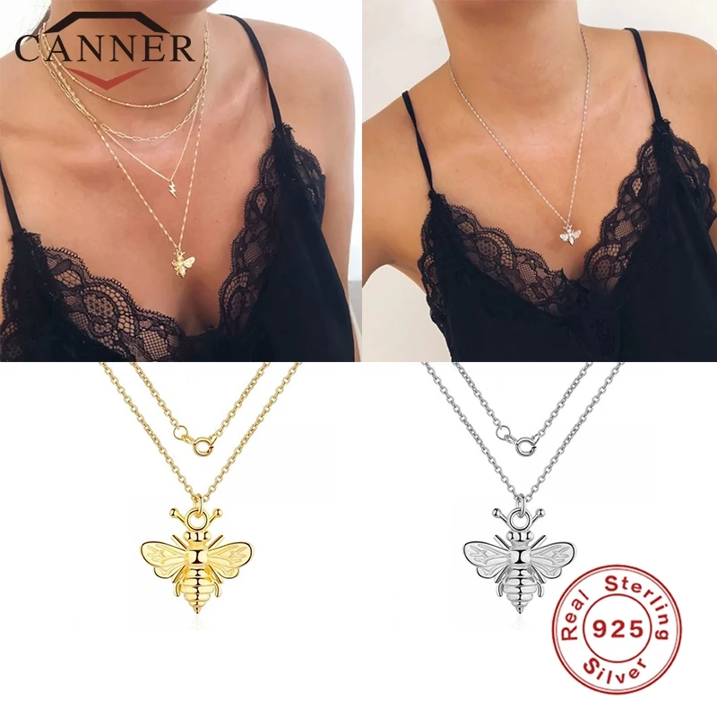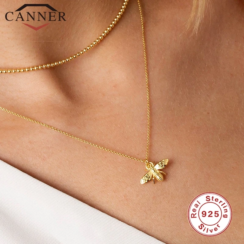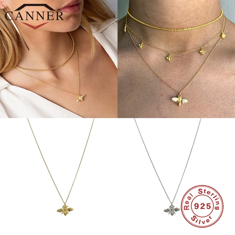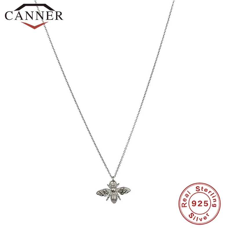 Женское Ожерелье CANNER, ожерелье из настоящего серебра 925 пробы с насекомыми и пчелами, Круглый чокер, цепочка до ключиц