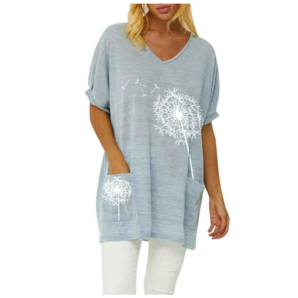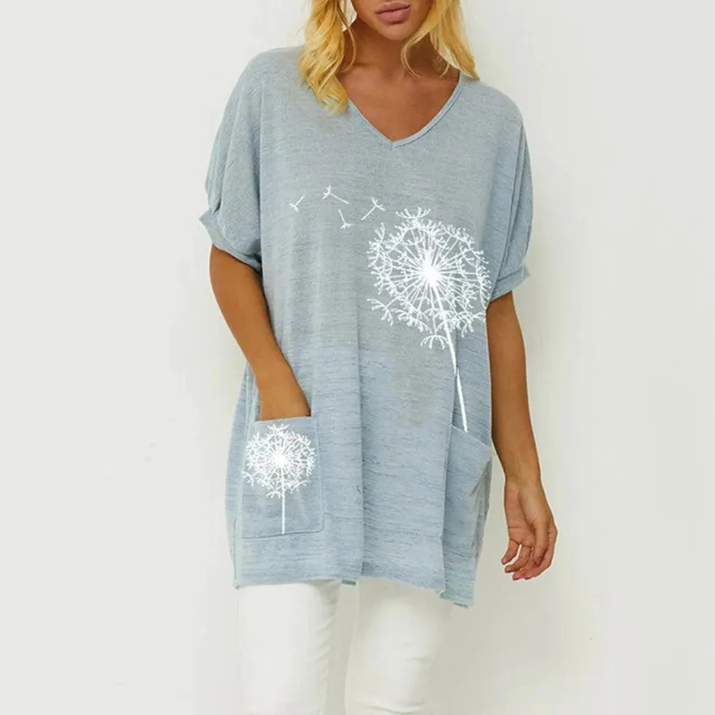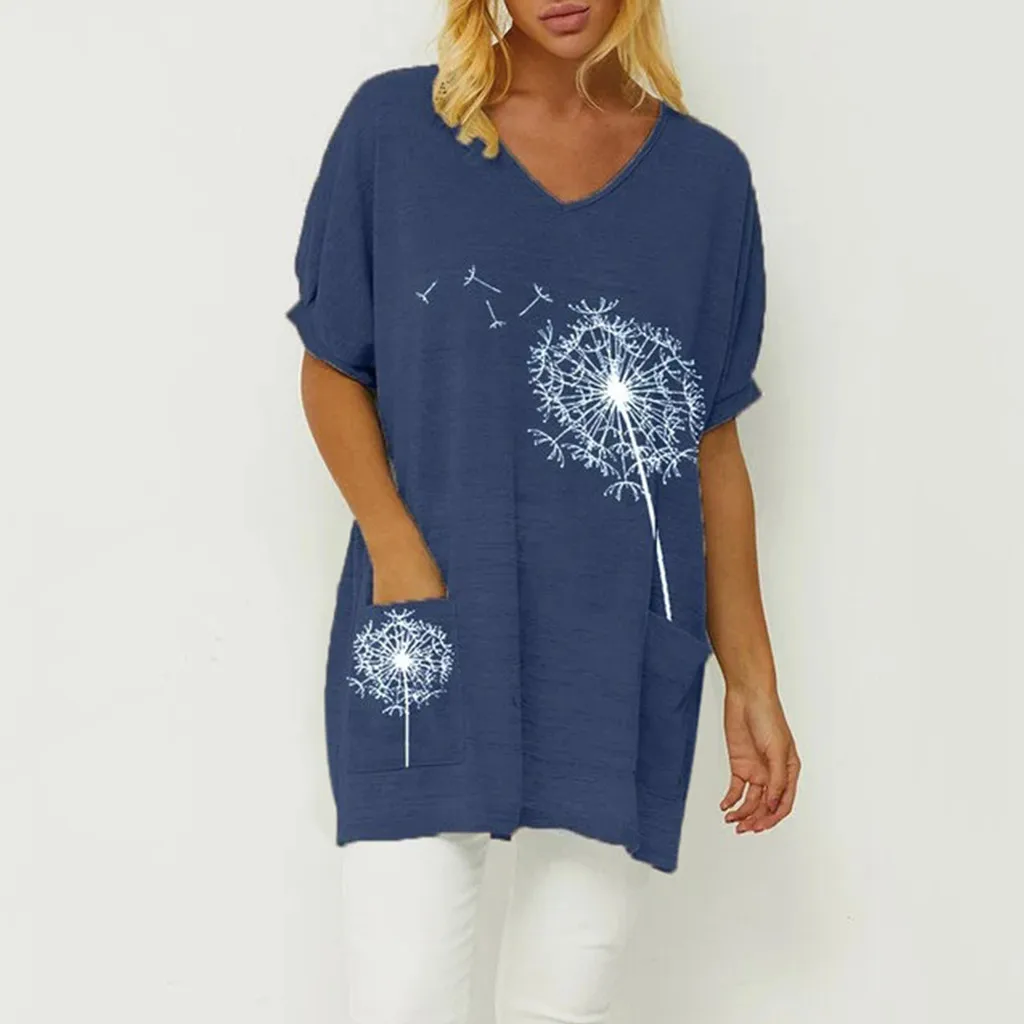 Женская блузка с цветочным принтом одуванчика, Повседневная хлопковая рубашка с коротким рукавом, Летняя женская одежда