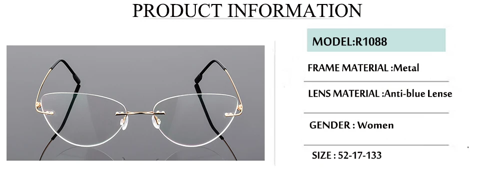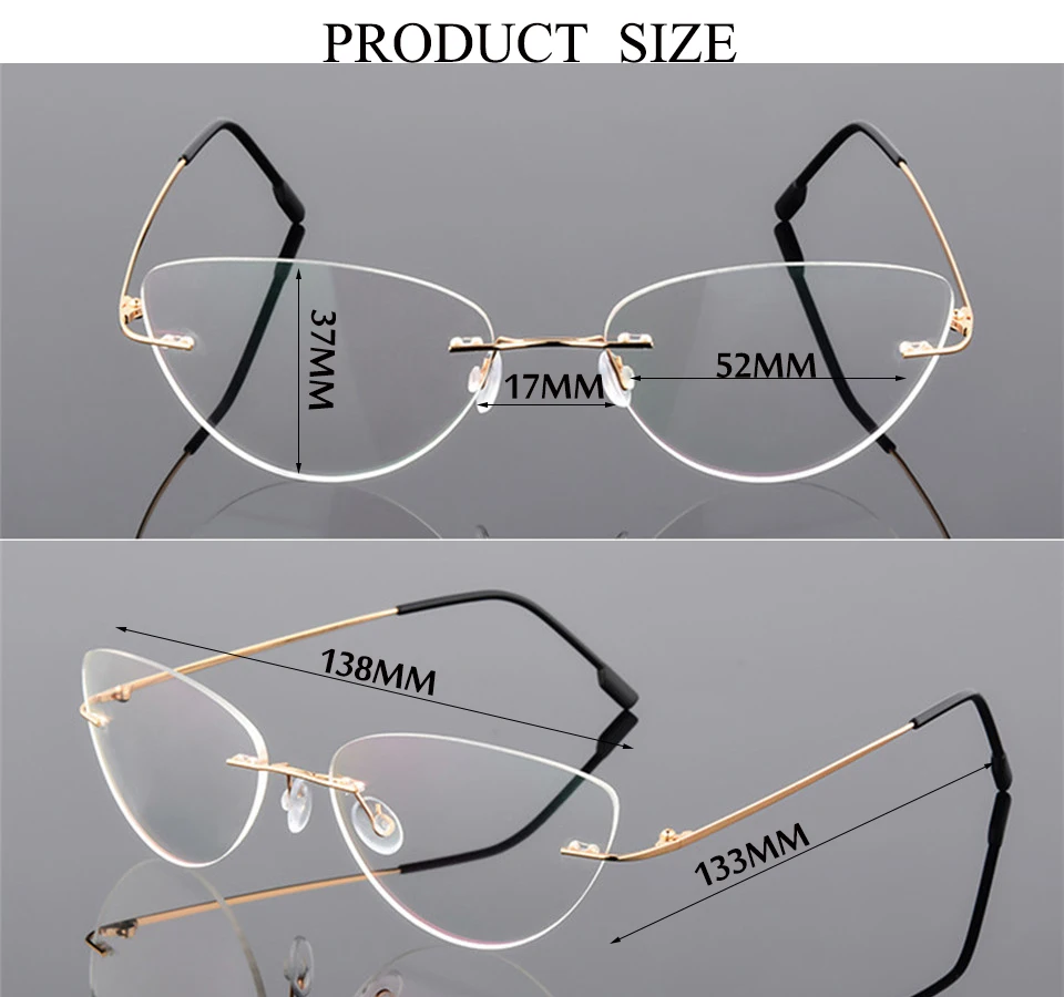 Очки для чтения кошачий глаз женские без оправы, очки кошачий глаз из титанового сплава с диоптриями + 1,50