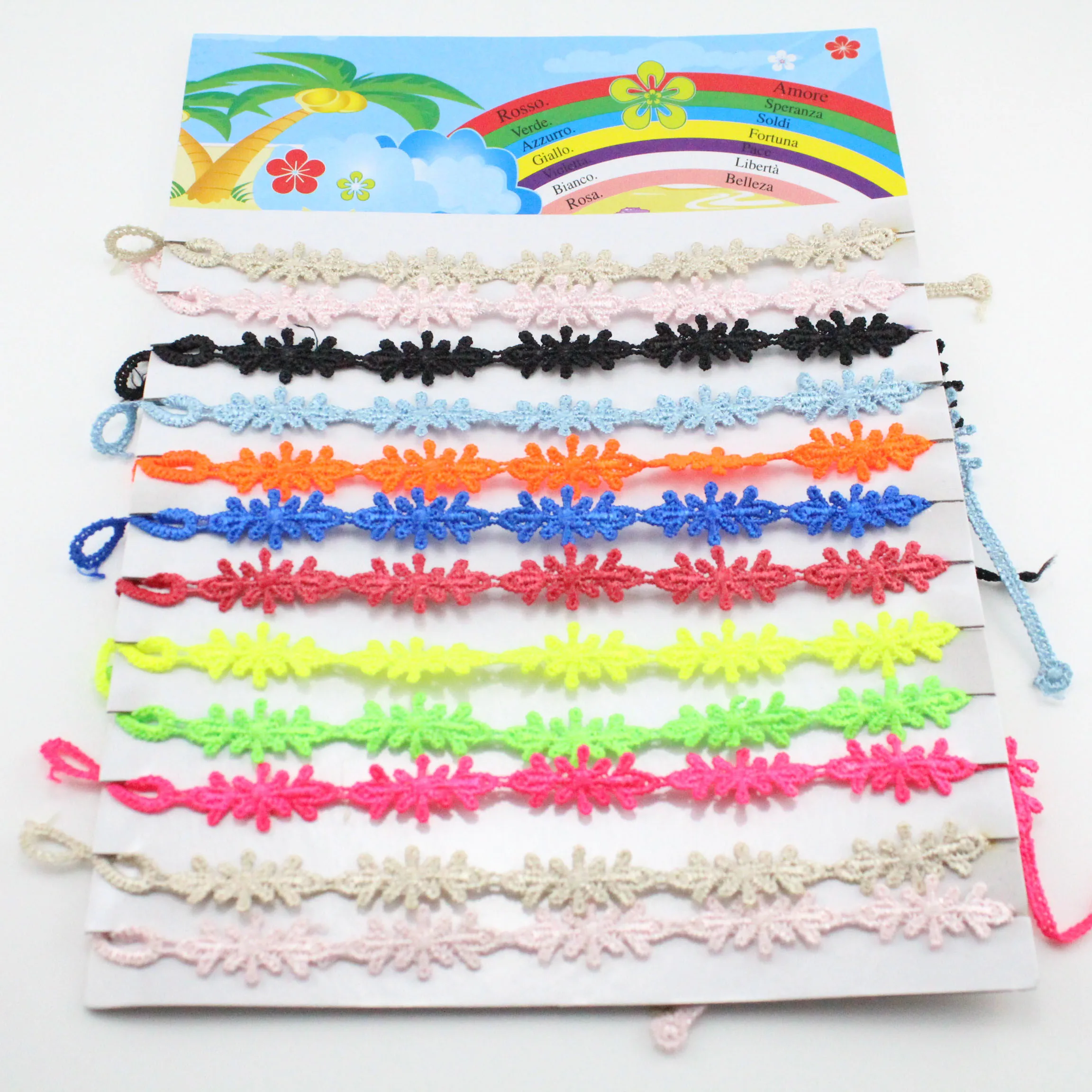 Разные цвета красочная плетеная веревка цветок Шарм кружева макраме браслет ювелирные изделия для девочек оптом ювелирные изделия браслет для женщин