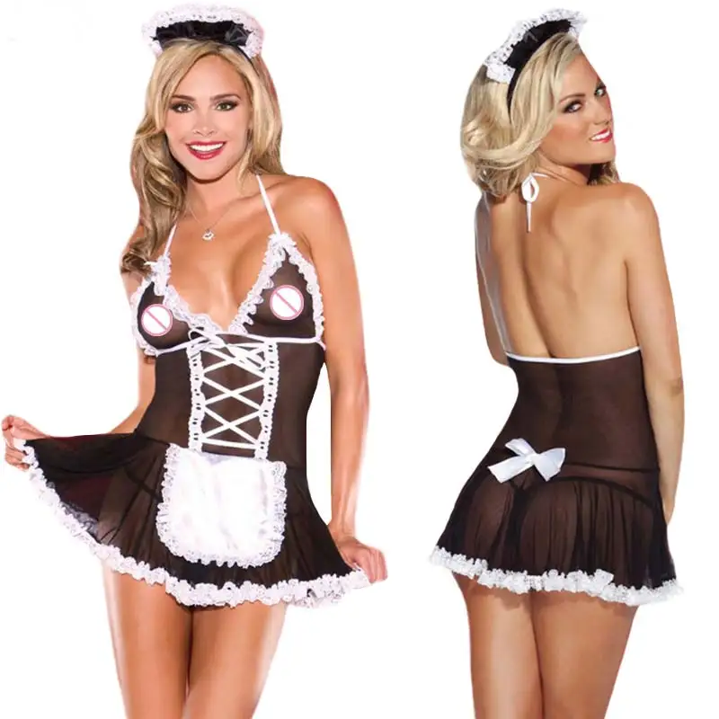 Размера плюс нижнее белье для женщин сексуальное эротическое нижнее белье кружевное платье горничной порно Косплей Униформа Lenceria Sexi костюмы сорочка