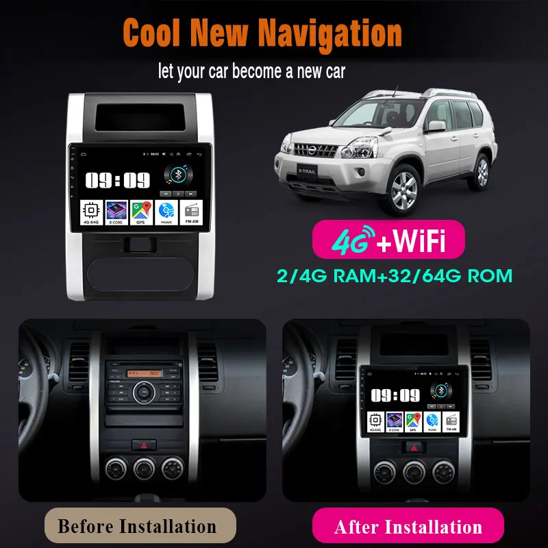 Автомагнитола 2DIN, Android 9,0, для Nissan X-Trail, XTrail, X Trail T32, T31, Qashqai, 2007-2015, GPS-навигация, мультимедийный видеоплеер, FM
