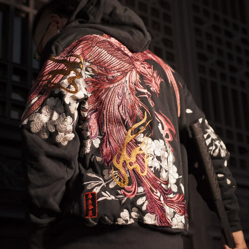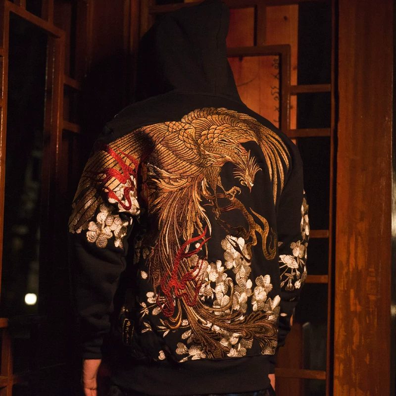 Модные высококачественные плотные рабочие пальто уличная одежда Yokosuka Phoenix Sakura Ukiyoe бейсбольная куртка с вышивкой Топы L6