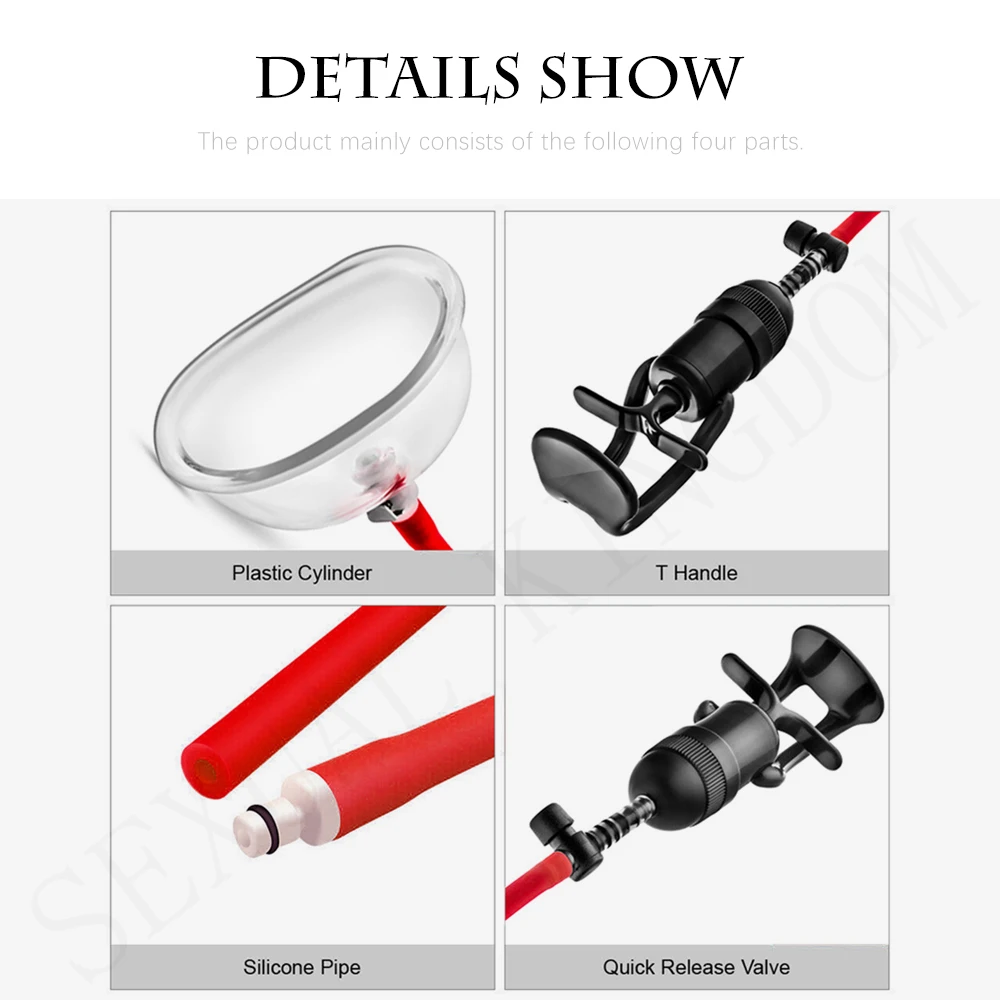1. Цвет: красный/синий 2. Водонепроницаемый: моющийся 3. Размер: см. Изображение. 4. Материал: безопасный силикон 5. Особенность 1: вакуумный увеличитель груди 6. Особенность 2: сосание сосков чашка 7. Особенность 3: Улучшенный насос 8. Особенность 4: Стимулятор клитора грудной клетки 9. Особенность 5: Женский мастурбатор