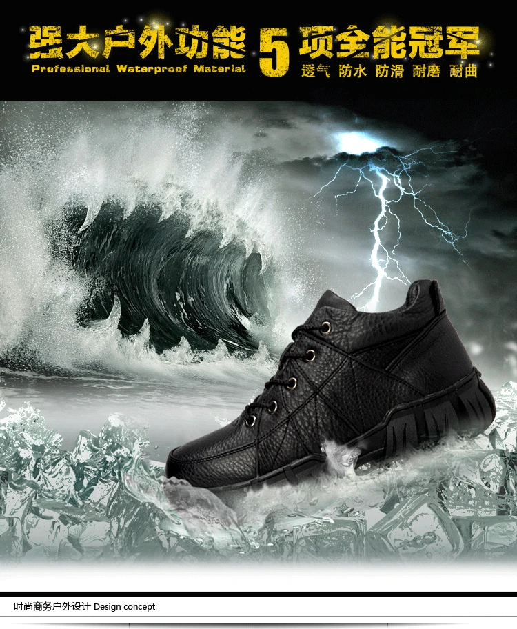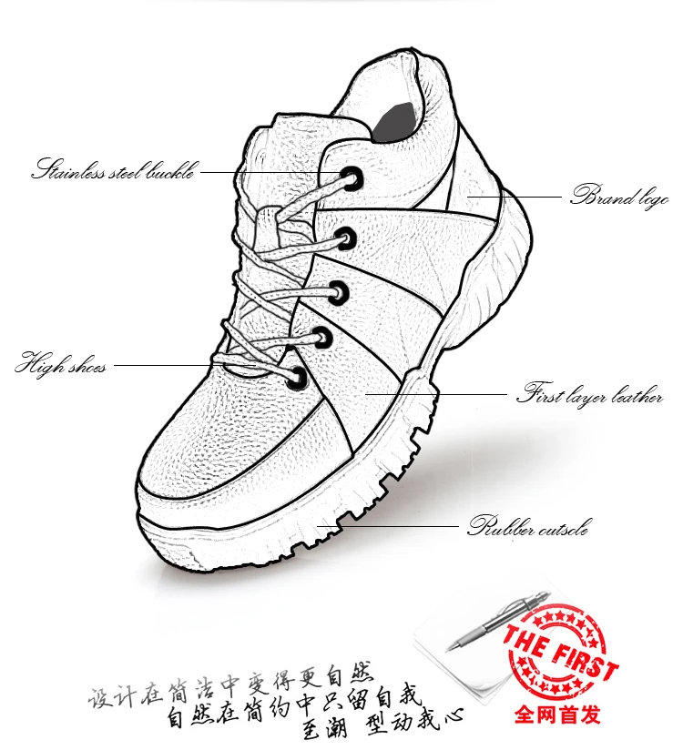 Ботинки мужские кожаные теплые, повседневные Нескользящие кроссовки, высокие резиновые, для работы и снега, зимняя обувь