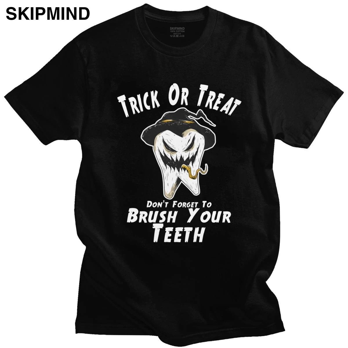 Humor Хэллоуин Монстр стоматолог Зуб футболка для мужчин; Короткий рукав 100% хлопковая Футболка с круглым вырезом и принтом гигиенист футболка