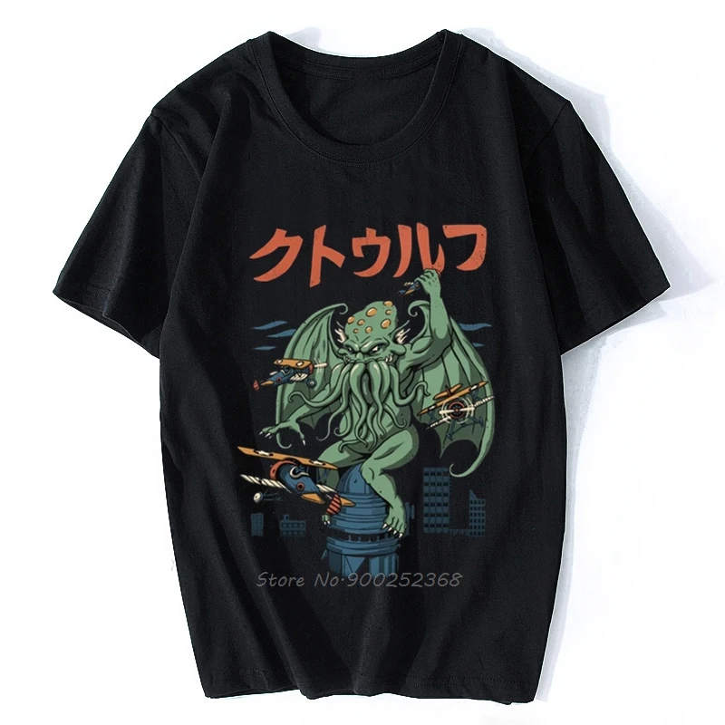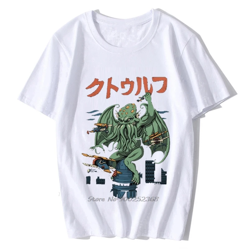 Уникальный Винтаж забавные Kaiju Ктулху атака футболки Для мужчин Harajuku Изделие из хлопка с короткими рукавами футболка Лавкрафт Япония футболка с монстром топ в подарок