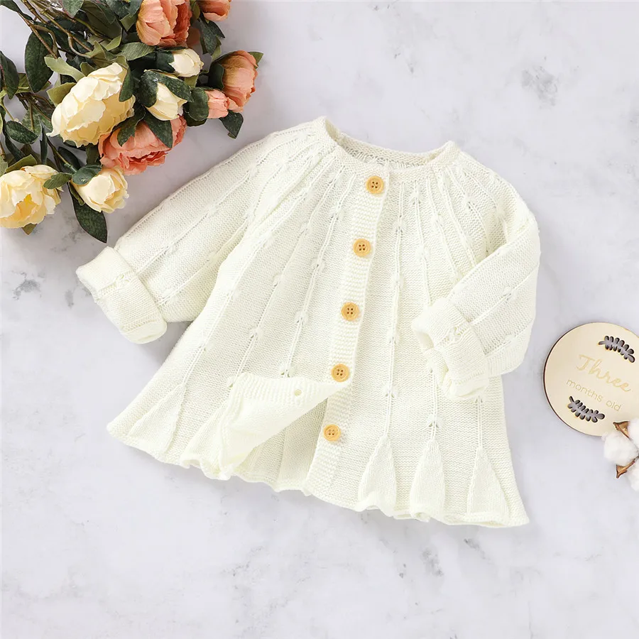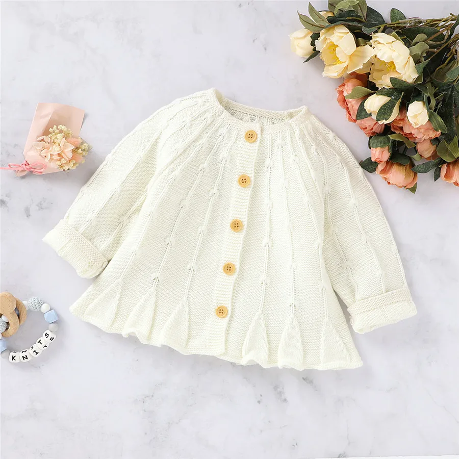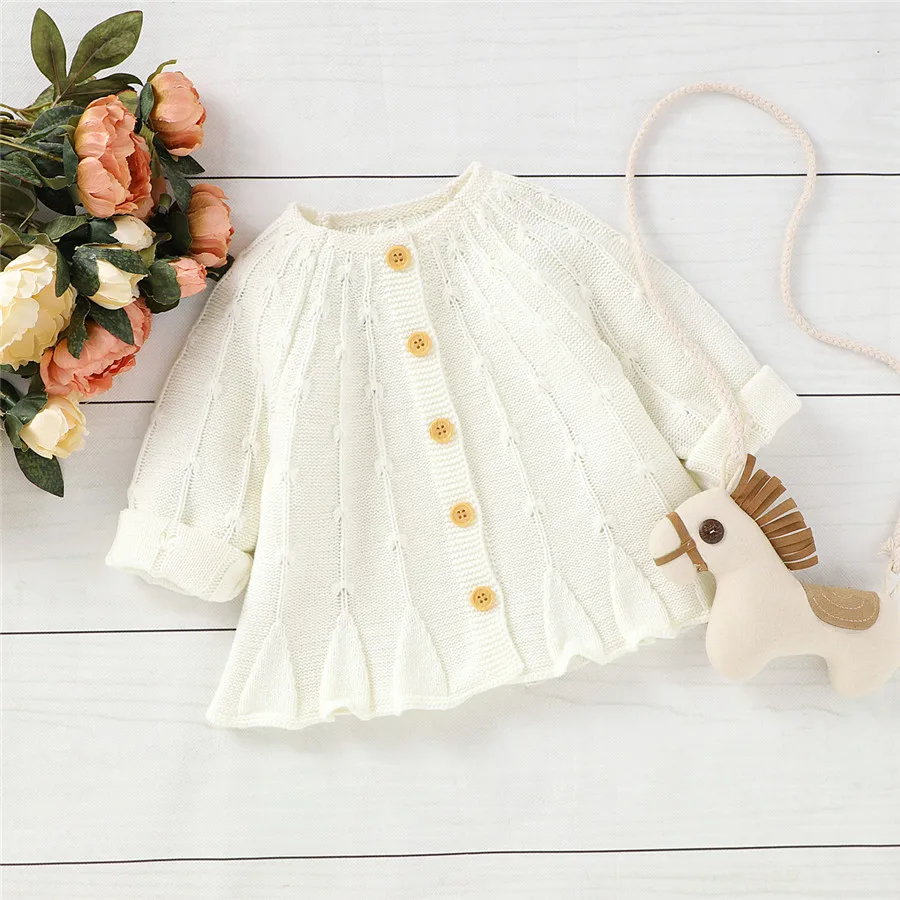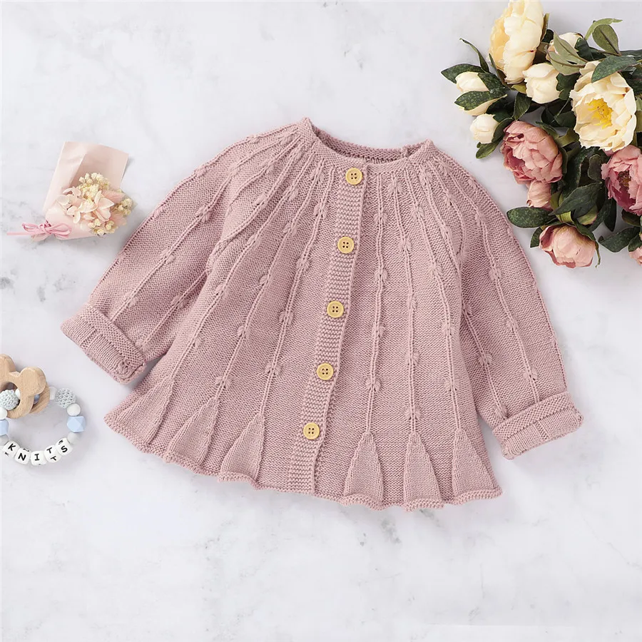 Вязаные свитера для маленьких девочек, кардиган, простая однотонная...
