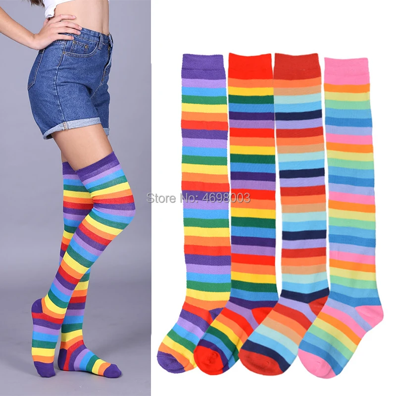 Гольфы, женские, до бедра, носки для Хэллоуина, сексуальные, до колена, полосатые, модные, радужные носки, Happy забавные Женские носочки