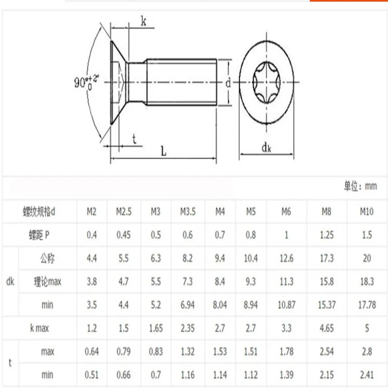 Винты с потайной головкой torx 10,9, 5-50 шт., M1.6, m2, m2.5, m3, m4, M5, M6, M8, шесть лепестков из черной стали