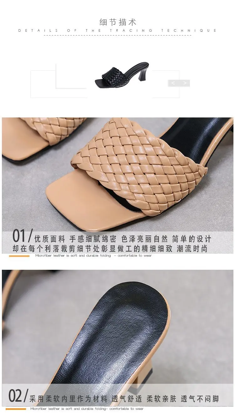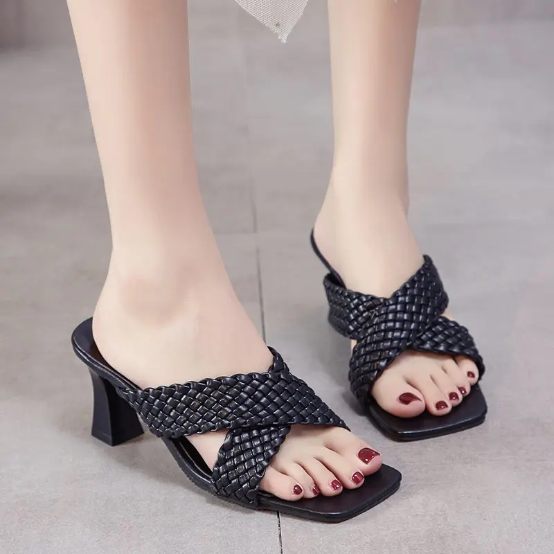 Шлепанцы женские, летние, с сеткой, на высоком каблуке