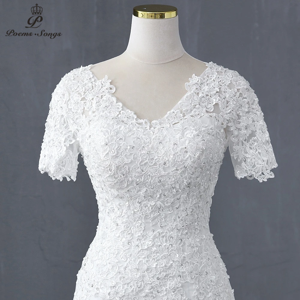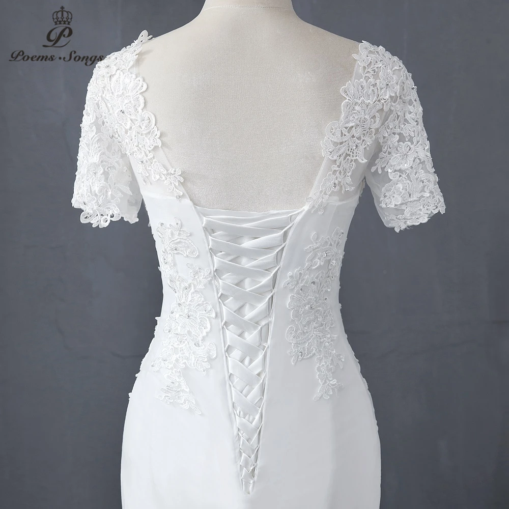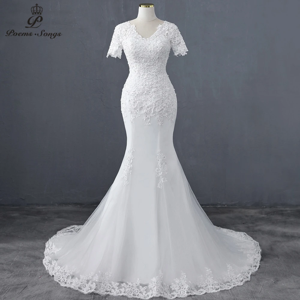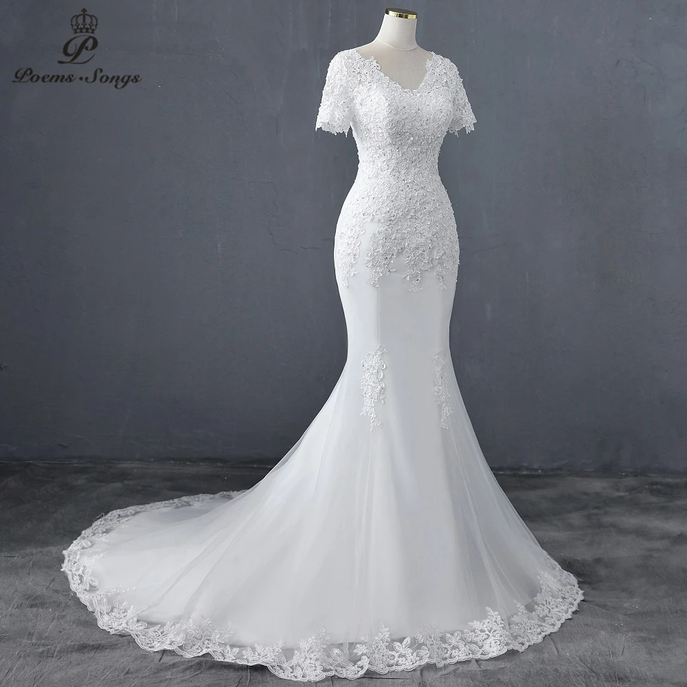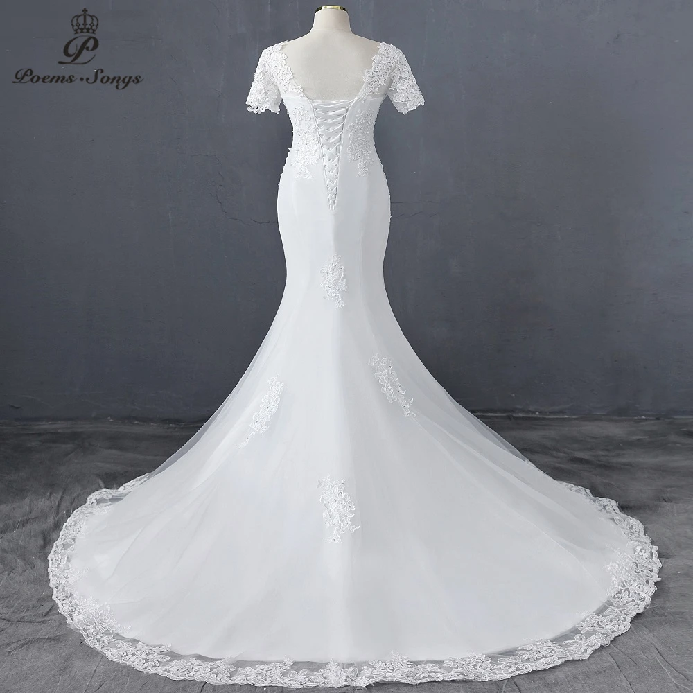Женское свадебное платье-русалка, с аппликацией и коротким рукавом