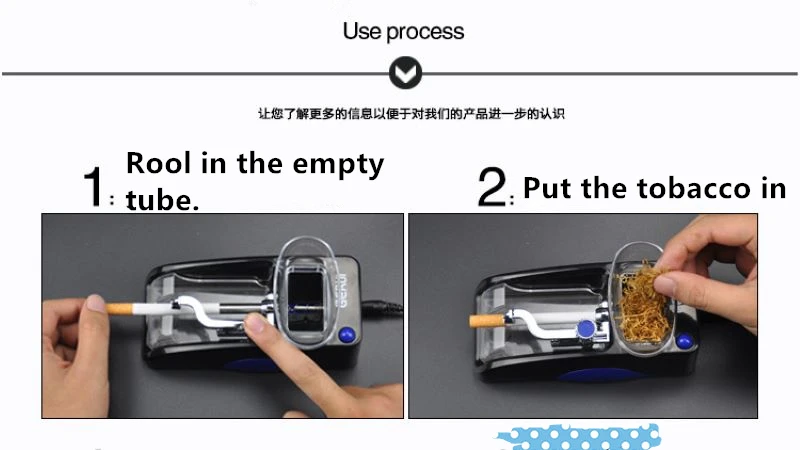 Тонкая сигарета прокатки машинаТовар с диаметром выходного отверстия: 6,5 ммРазмеры: 17,3*8,3*10,5 смВес: 400 гКатегория продукта: Автоматическая электрическая сигаретаМесто orgin: КитайИспользование: индивидуальная семьяЦвет: случайный цветКатегория продукта: Автоматическая электрическая сигаретаПоводы для подарков: преимущества сотрудников, юбилейные праздники, фестивали, торговые ярмаркиВетрозащитная Функция: ДаДополнительные Особенности: коллекция и украшениеСпособность поставки: 9000 шт/месяцПосылка включает:1*6,5 мм машина для прокатки сигарет (случайный цвет)
