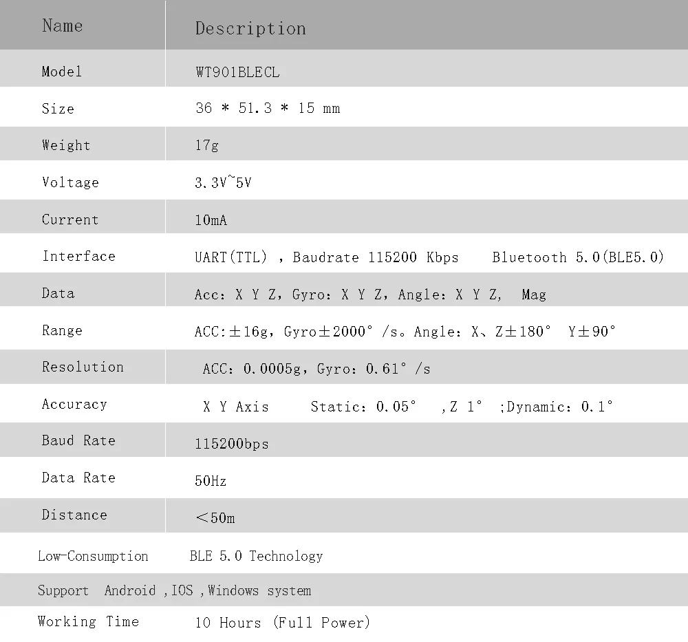 Measurement3-axis XYZ Acceleration, Gyro, Angle, Magnetic Field