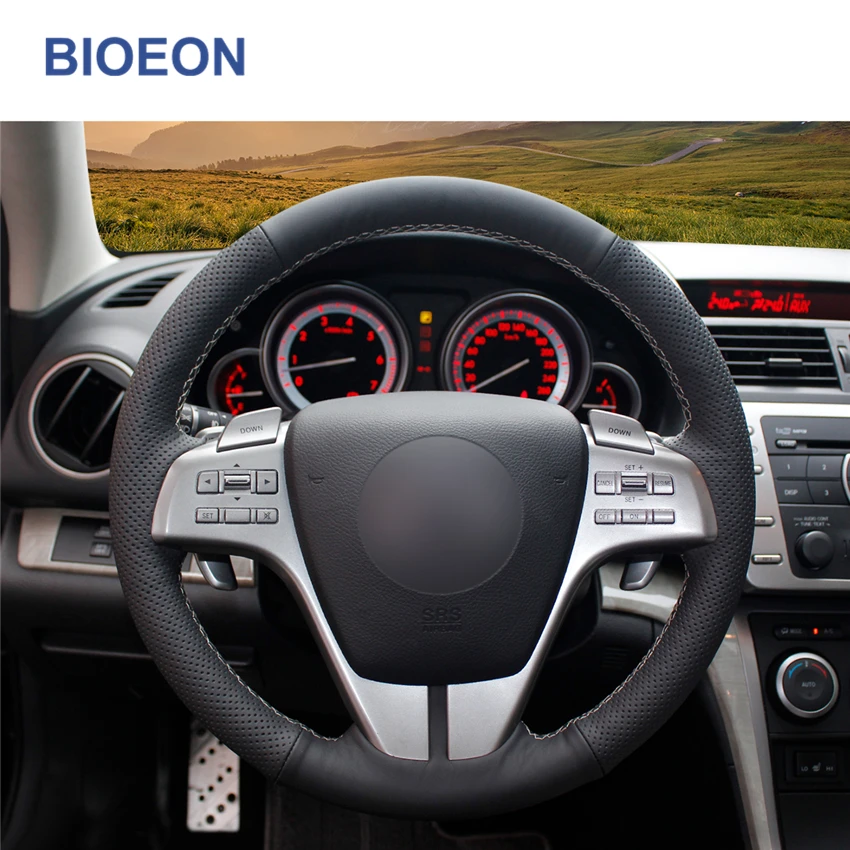 Чехол на руль из искусственной кожи для Mazda, черный чехол на руль...