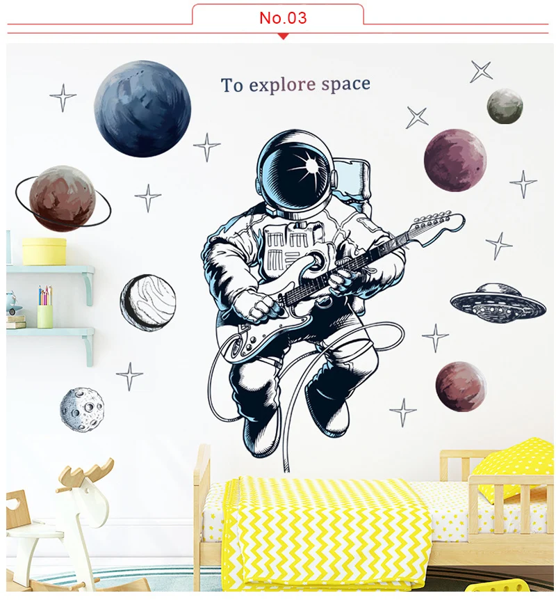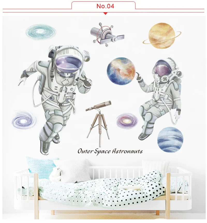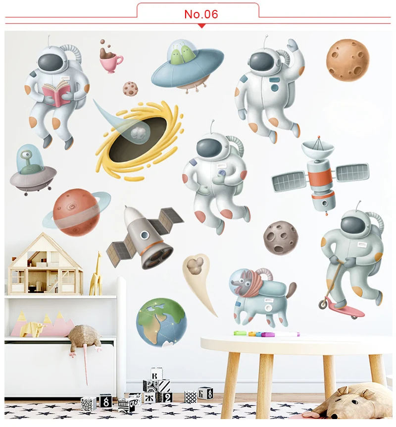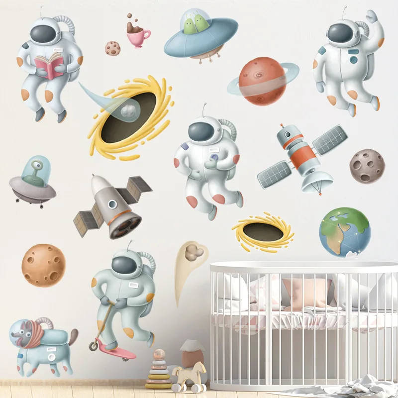 Съемные наклейки на стену с изображением космонавта из мультфильма для детской комнаты, Декор стен из ПВХ, наклейки на стену для детской комнаты, украшение дома