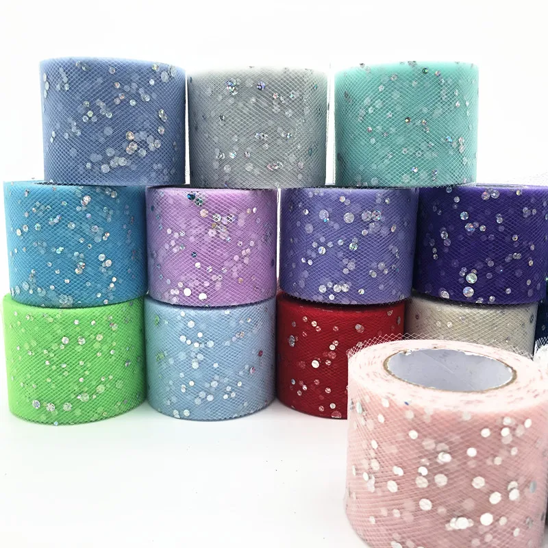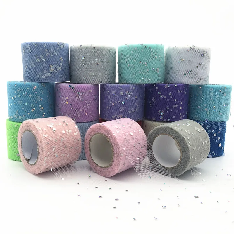 Рулон тюля с блестками, 25 ярдов, 5 см, для рукоделивечерние, дня рождения, декора, катушки, свадебные украшения, блестящая ткань из органзы