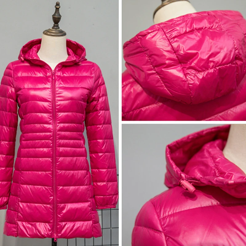 Пуховик женский зимний, светильник нный, ветрозащитный, с капюшоном