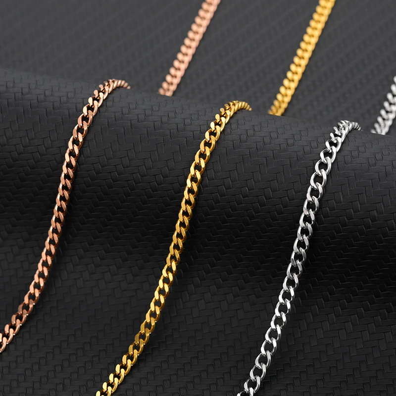 4 мм нержавеющая сталь кубинской цепочка на шею для мужчин классические туфли в стиле панк с крупными звеньями кубинской цепочка колье, Ретро стиль, покрыто розовым золотом Цвет звеньевая цепь