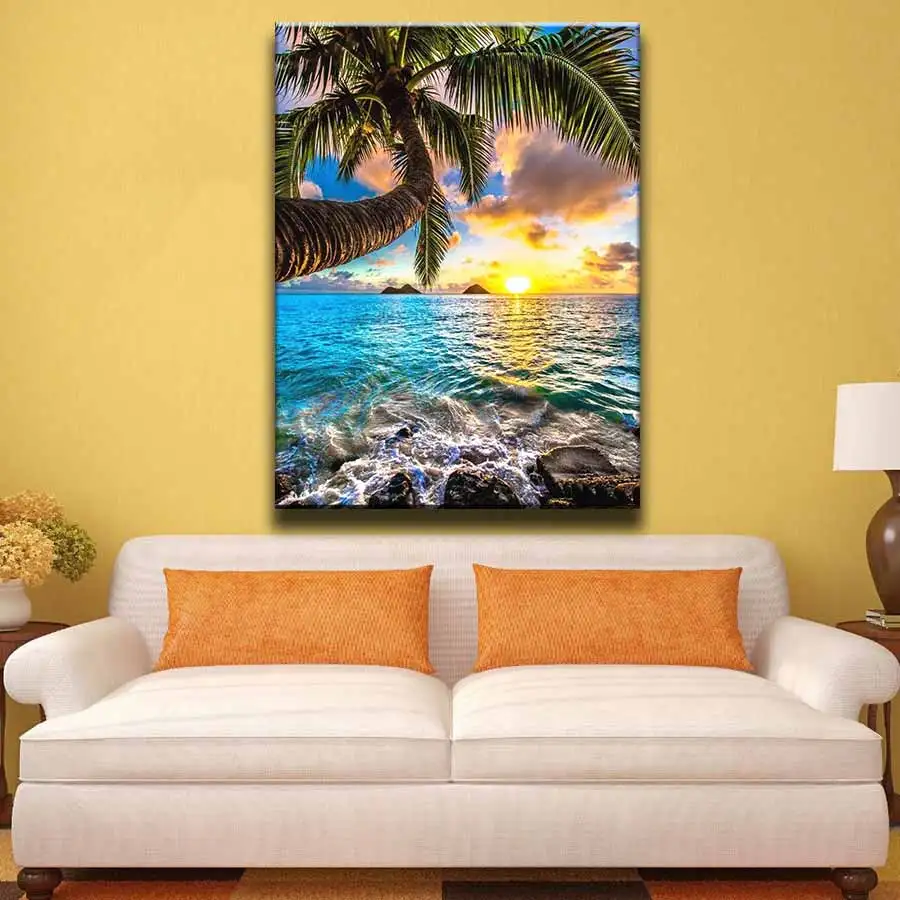 Алмазная живопись Ever Moment, Средиземноморский стиль, вышивка морской пейзаж кокосовое дерево, тропический стиль, квадратные стразы, Наборы для творчества 5L011