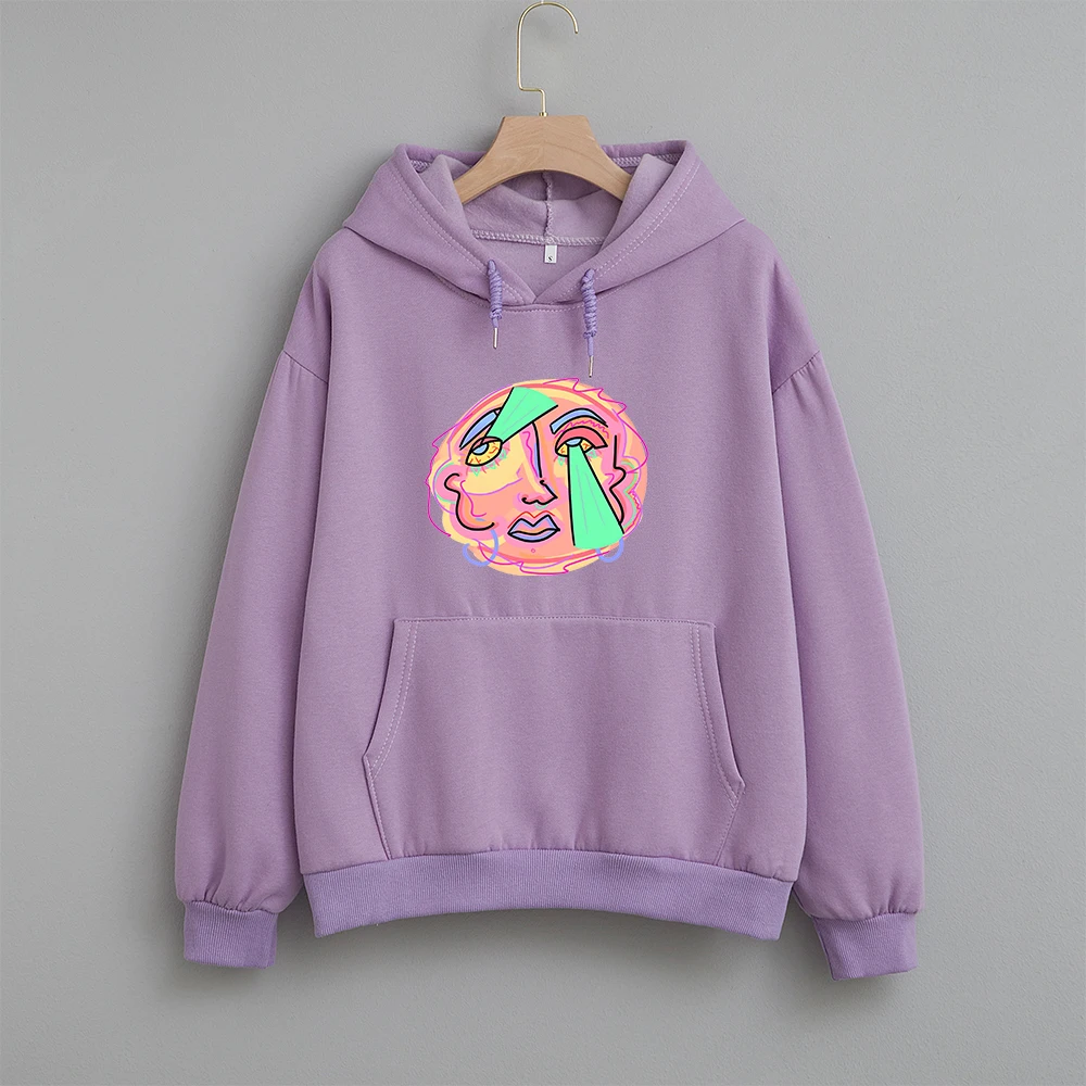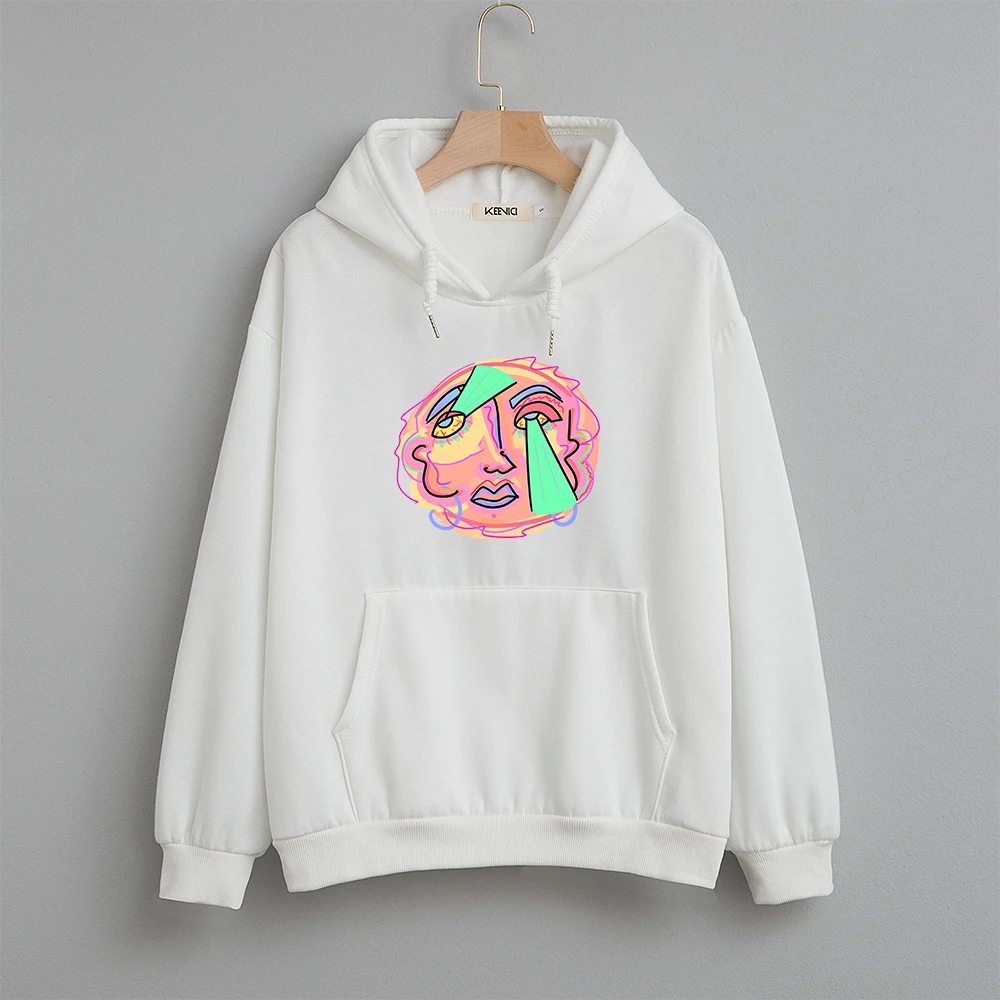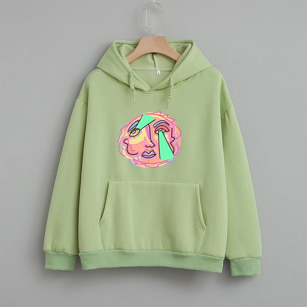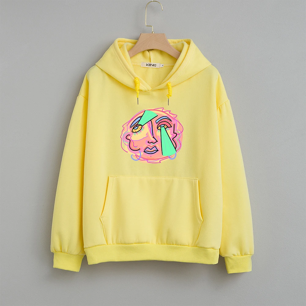 Корейский Стиль женские толстовки с капюшоном и Свободные хлопчатобумажные повседневные брюки с оборками со штриховыми рисунками; Пуловер с длинными рукавами с принтом с капюшоном мягкие фуфайки Свободная Толстовка