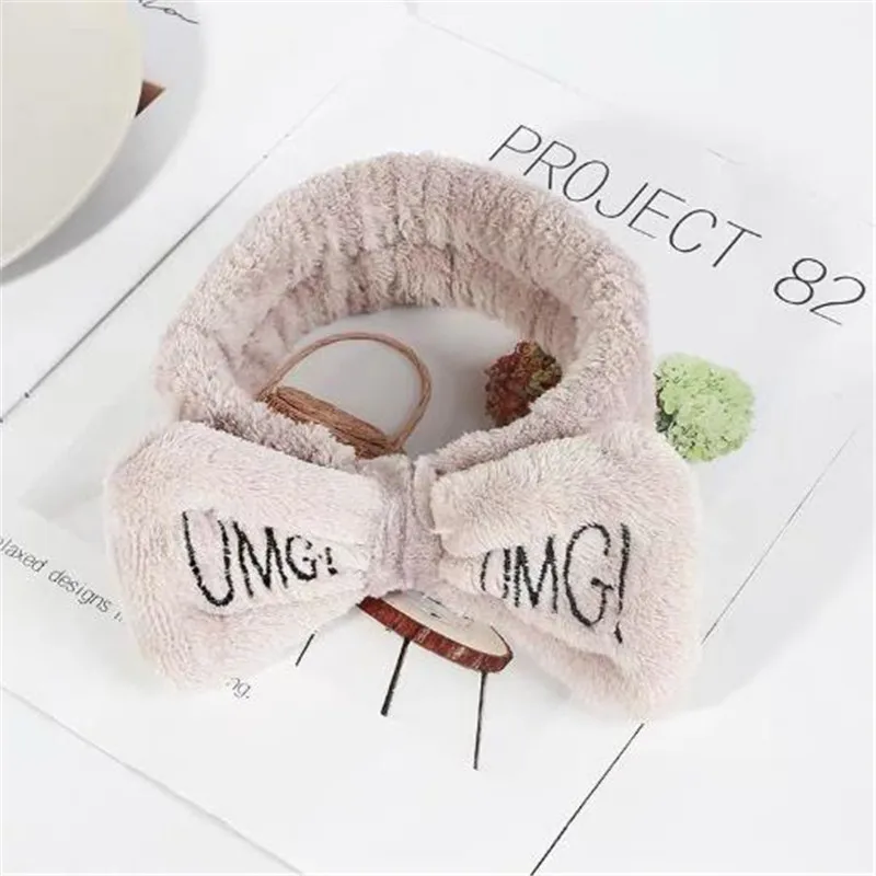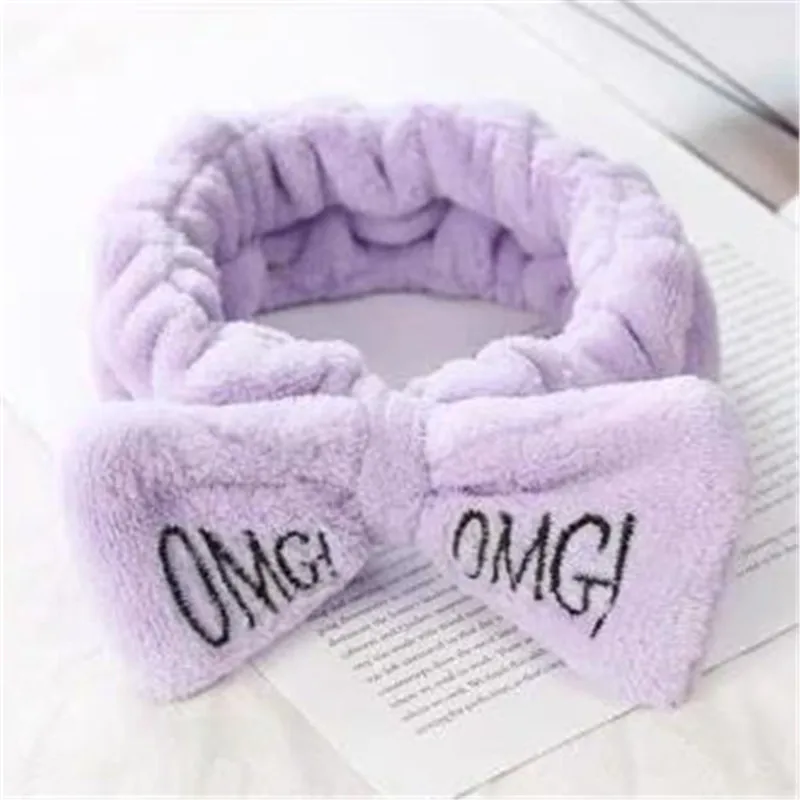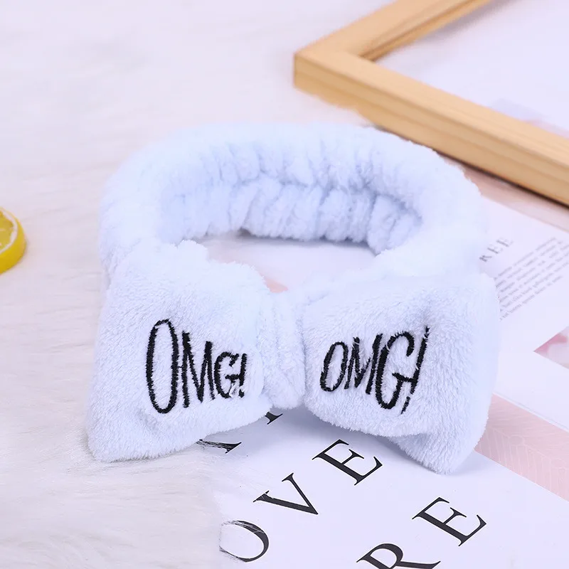 Новые повязки на голову с надписью OMG для женщин и девочек, банты для мытья лица, тюрбан для макияжа, эластичные повязки для волос из кораллового флиса, аксессуары для волос, Оптовая продажа