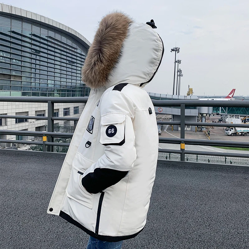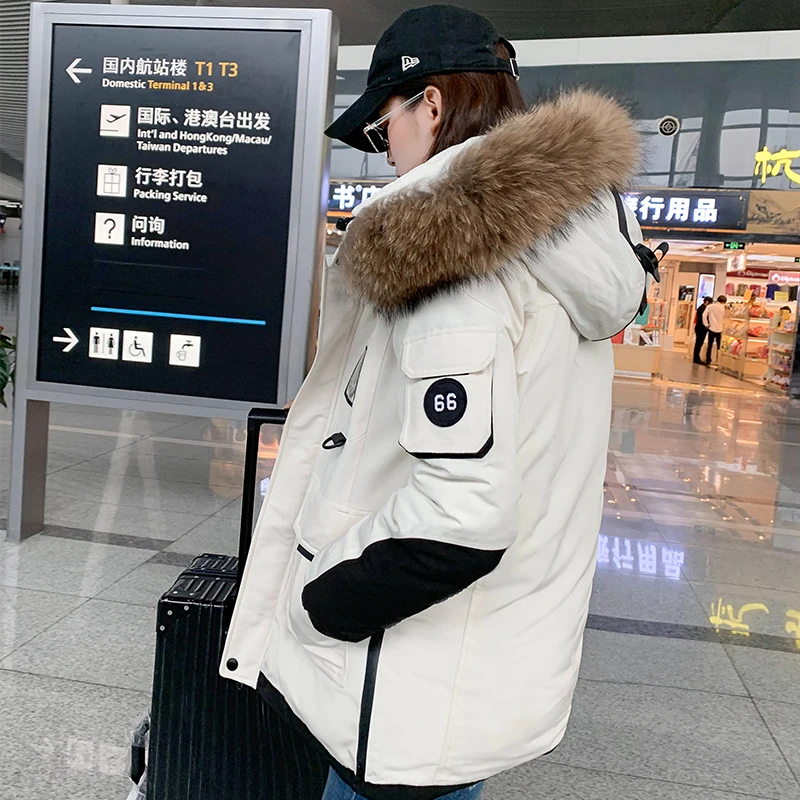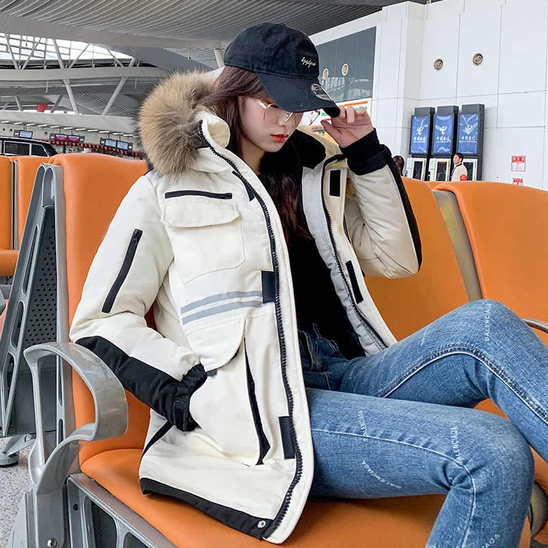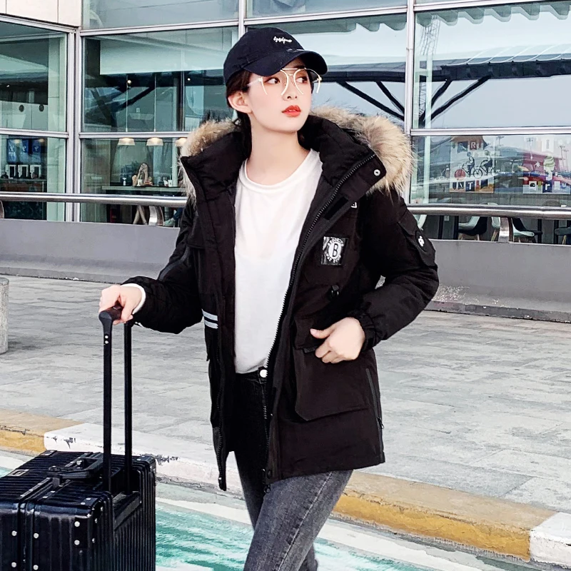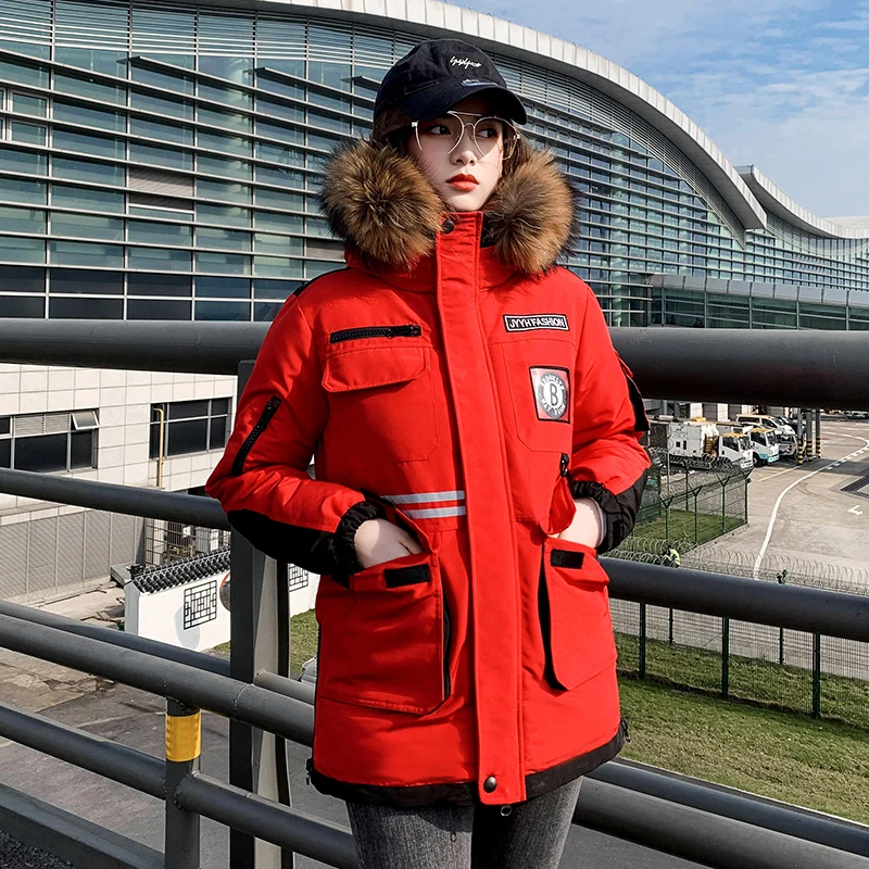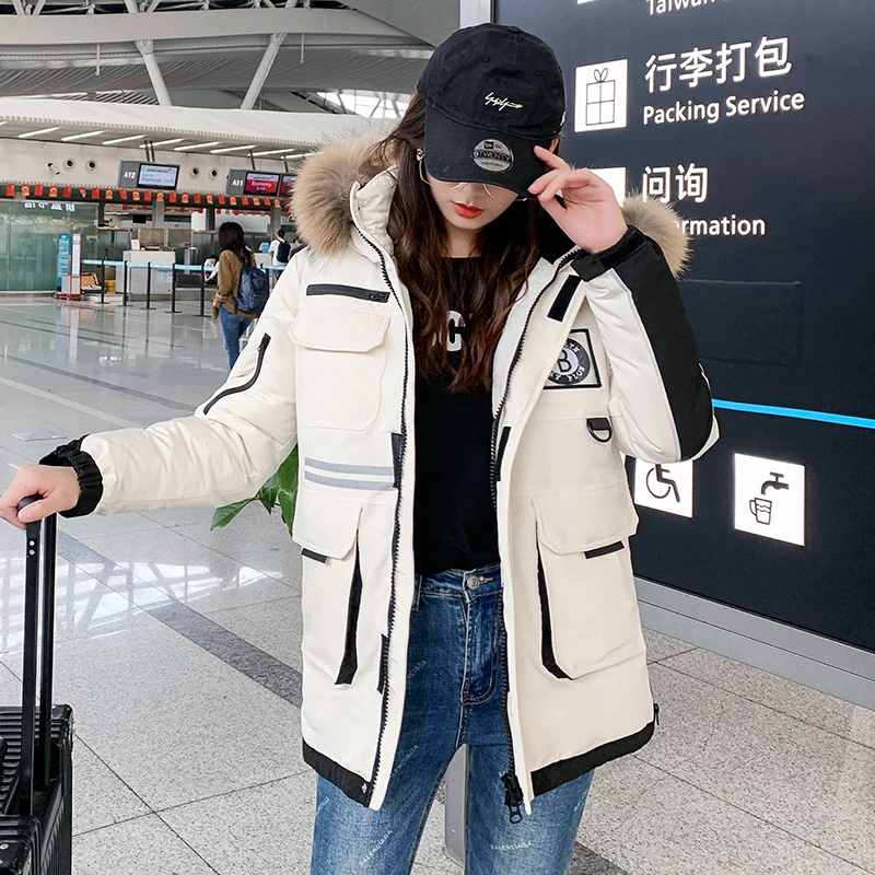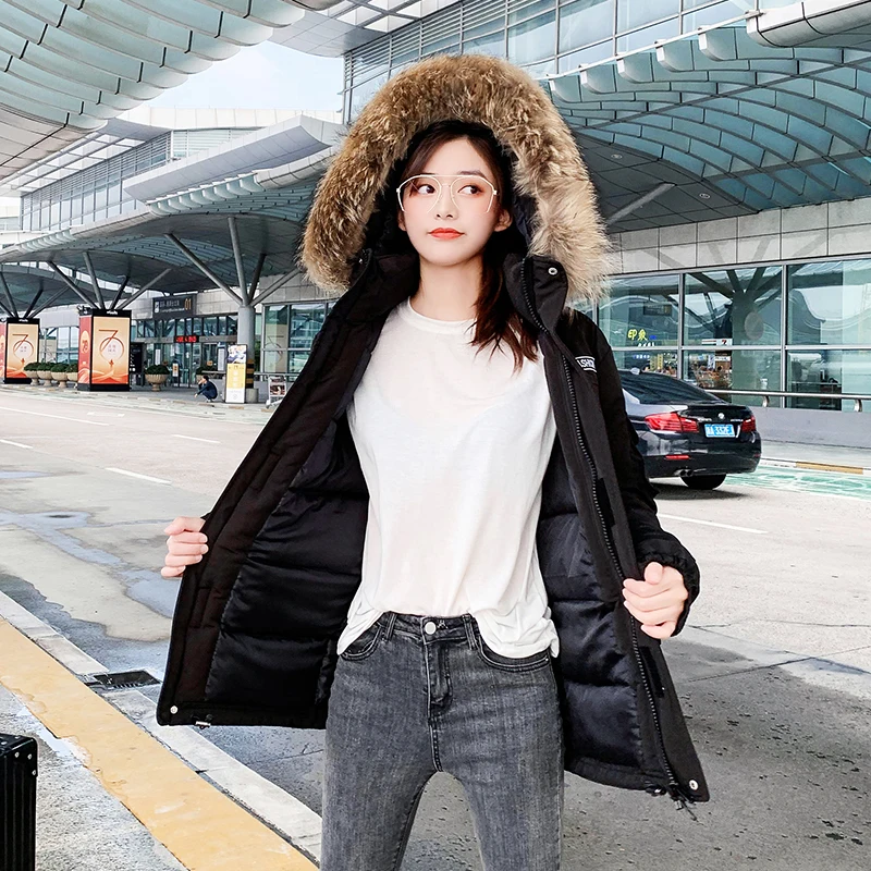 Зимняя длинная куртка с капюшоном в стиле сафари, женские парки в Корейском стиле с принтом и меховым воротником, плотное пальто для женщин