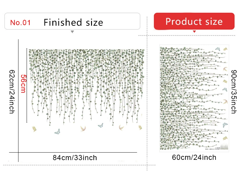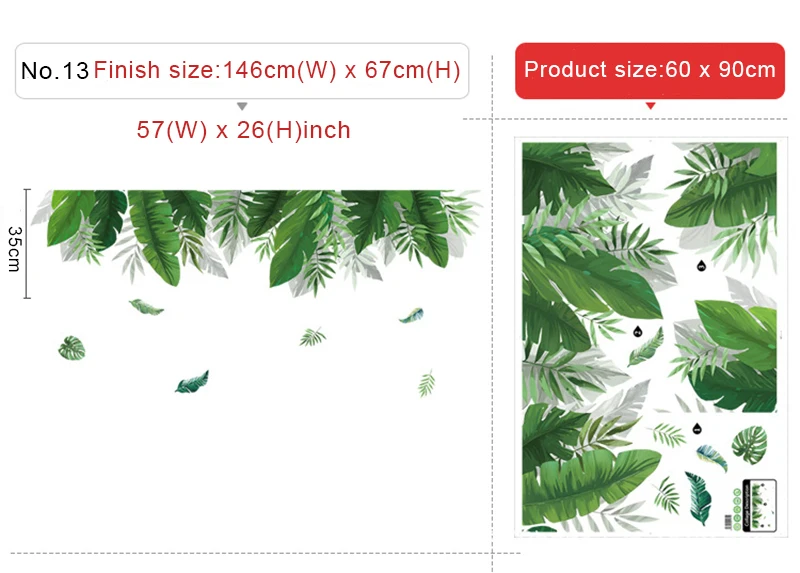 57*90 см зеленый лист наклейки на стену для гостиной украшения съем...