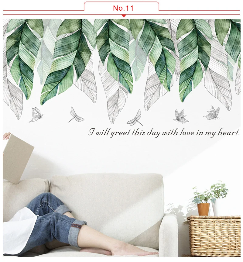 Зеленые листья наклейки на стену для спальни гостиной столовой Rom ...
