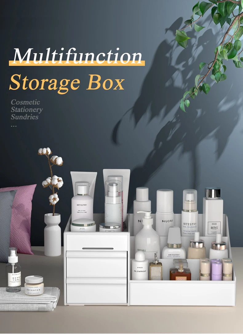 Пластиковая коробка для хранения косметики, органайзер для стола, хранилище канцелярских товаров, большой вместительный ящик, органайзер для мелочи, офисные аксессуары письменный прибор канцелярия канцелярские товары