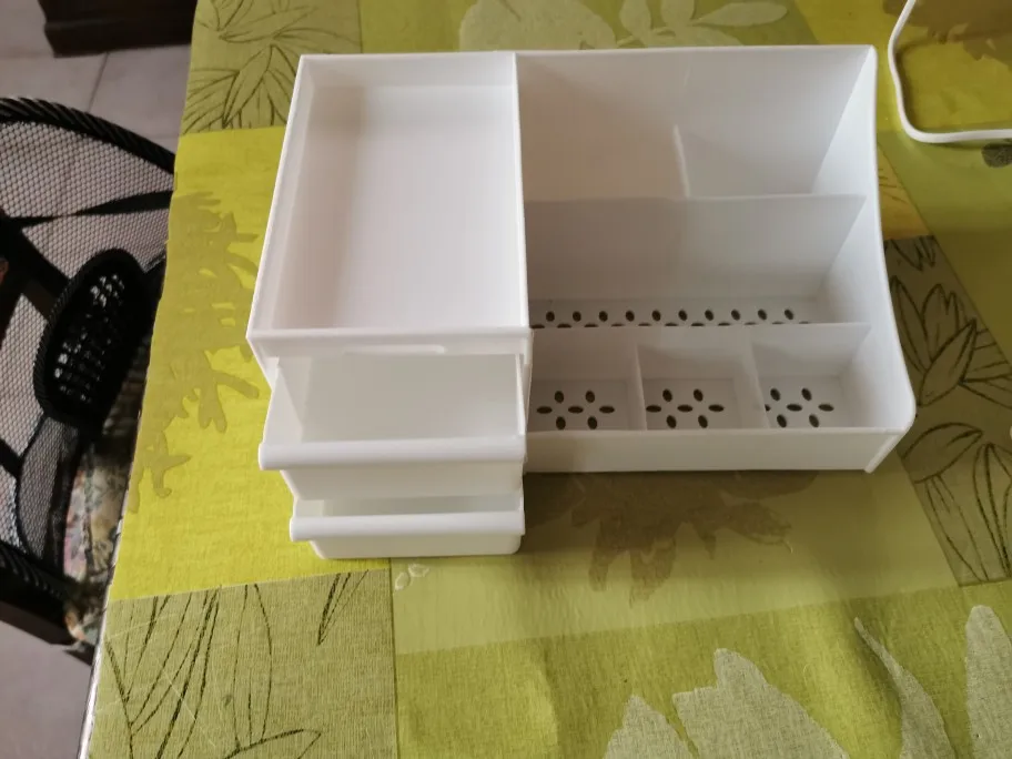Хороший пластик, все ровное, ящичек выдвигается. Качеством довольна на все 200!