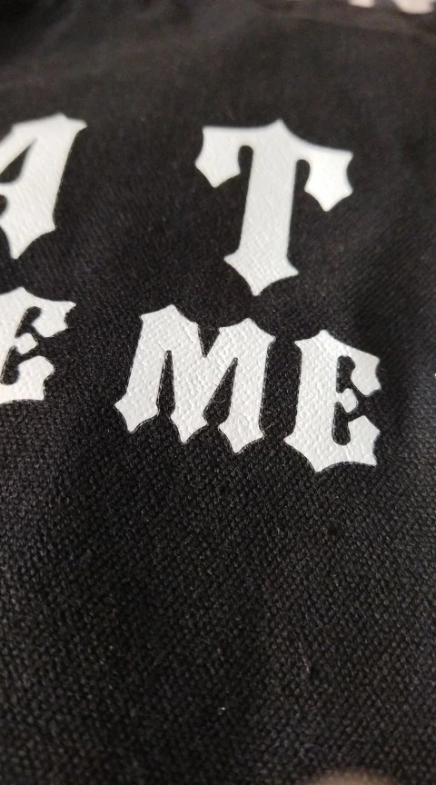 Очень красиво, спасибо. Почти не торчат нитки, разве что находила две. Всем советую. Ткань плотная. Надпись неплохая, думаю продержится не мало.