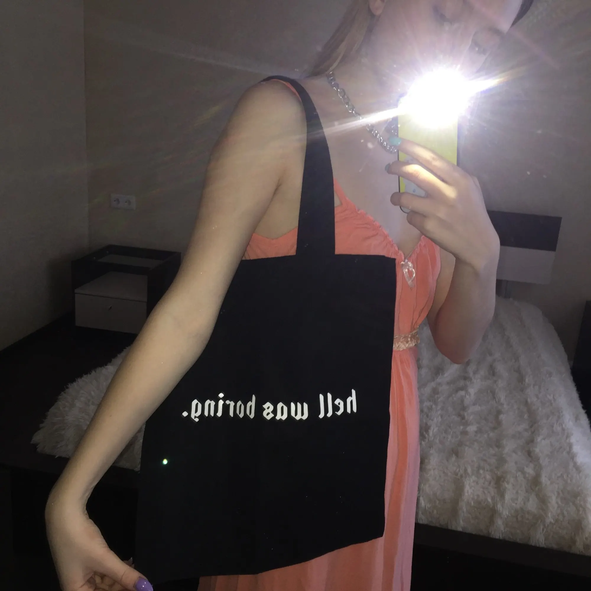 Хороший шоппер, но я думала что он будет больше. А так он небольшой, поместится туда не очень много. Также ручки коротковаты, так что зимой будет не очень удобно носить его на плече, он прям впритык будет. Но в остальном качество хорошее, принт тоже хороший) Милый шоппер. Для небольших покупок будет нормально. Торчали кое-где ниточки, но я просто их обрезала. За такую цену нормально. Спасибо продавцу<3