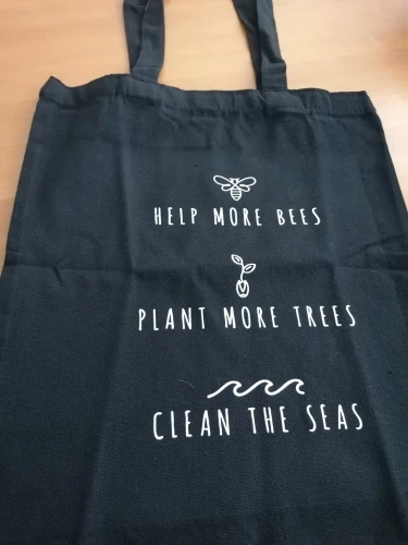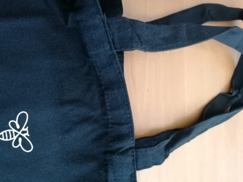 очень понравился шоппер. ткань плотная, никакие нитки не торчат, надпись также хорошая - четкая и ровная. ручки коротковаты, но это не страшно, на плече все равно удобно носить. рекомендую