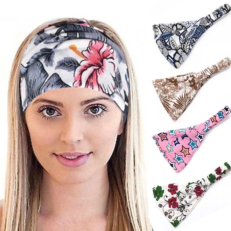Богемные богемные широкие хлопковые тянущиеся женские повязки на голову головной убор тюрбан головной убор Йога Бег бандана повязки на голову