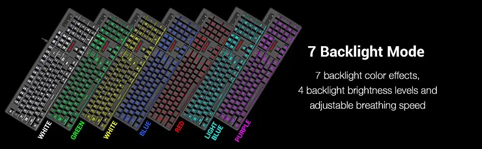 RGB светодиодный игровой клавиатура с подсветкой; K509 Redragon RGB светодиодный клавиатура с подсветкой ed клавиатура с 6 различными режимами подсветки, несколько цветов, 4 уровня яркости подсветки и регулируемой скоростью дыхания, освещение может быть полностью выключено