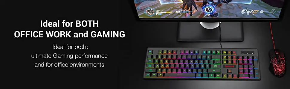 Игровая клавиатура Redragon K509-RGB DYAUS PRO с низким профилем, RGB подсветка с уникальной подсветкой по краям и клавишамK509-RGB Redragon-это не обычная игровая клавиатура. Он не только спроектирован и построен как бак с прочной конструкцией ABS, он также загружен функциями и уникальным освещением боковой подсветки окружающего края клавиатуры, окружающим всю клавиатуру, меняющим цвет в синхронизации со всеми клавишами подсветкиОсобенности клавиатуры:* 104 клавиши с отдельной Num Pad* Клавиши RGB с подсветкой с дыхательными эффектами и контролем яркости* 6 различных режимов подсветки* 4 различных уровня яркости* Тихие механические ключи* Уникальная внешняя подсветка клавиатуры RGB* 25 бесконтактных ключей* 12 мультимедийных клавиш* WIN ключи могут быть отключены во время игр* Защита от брызг* Эргономичный Низкопрофильный Компактный дизайн* Без коррозии USB разъем для надежного подключения* Вес, размеры продукта: 23,3 унций, 17,32x5,32x1,34 дюймаЧто в коробке* Клавиатура (черный)* Руководство пользователя* Гарантийный талон