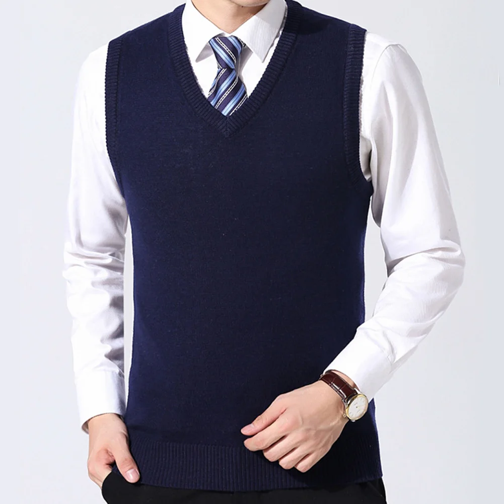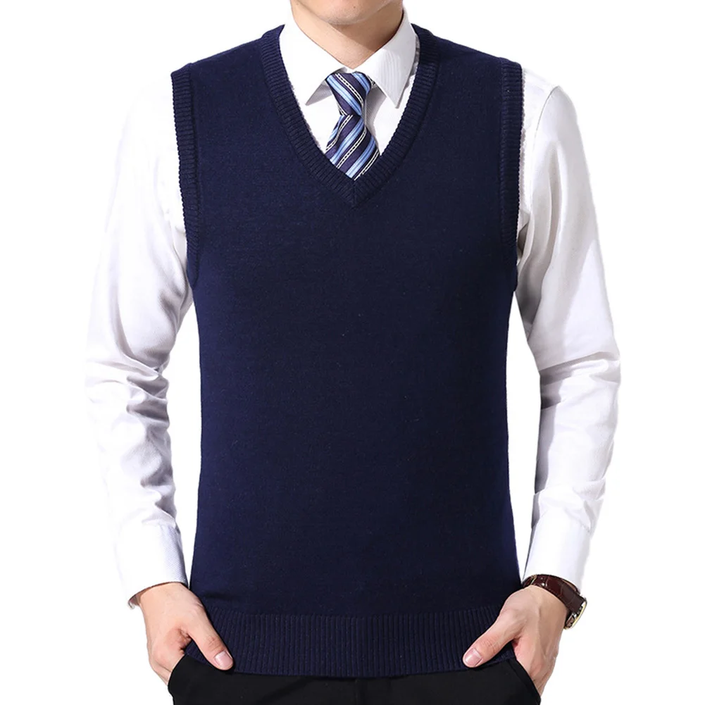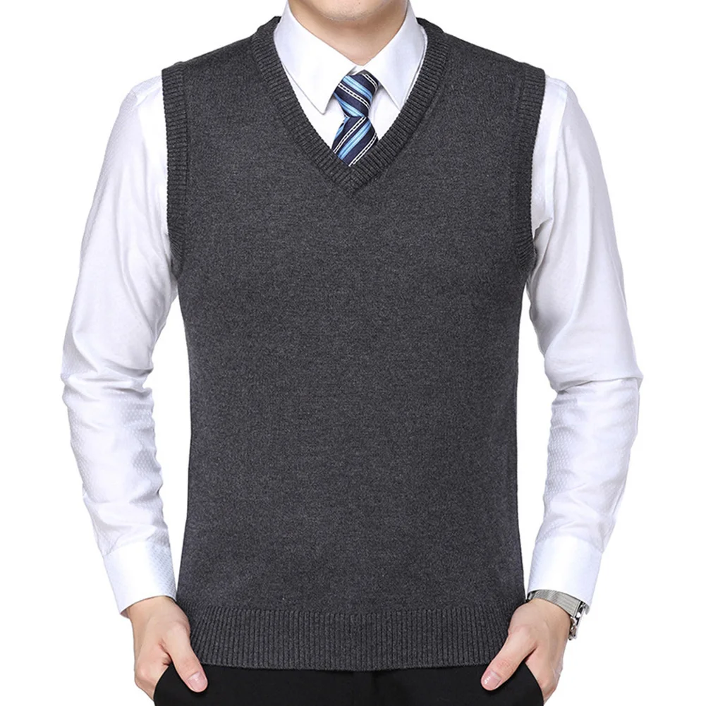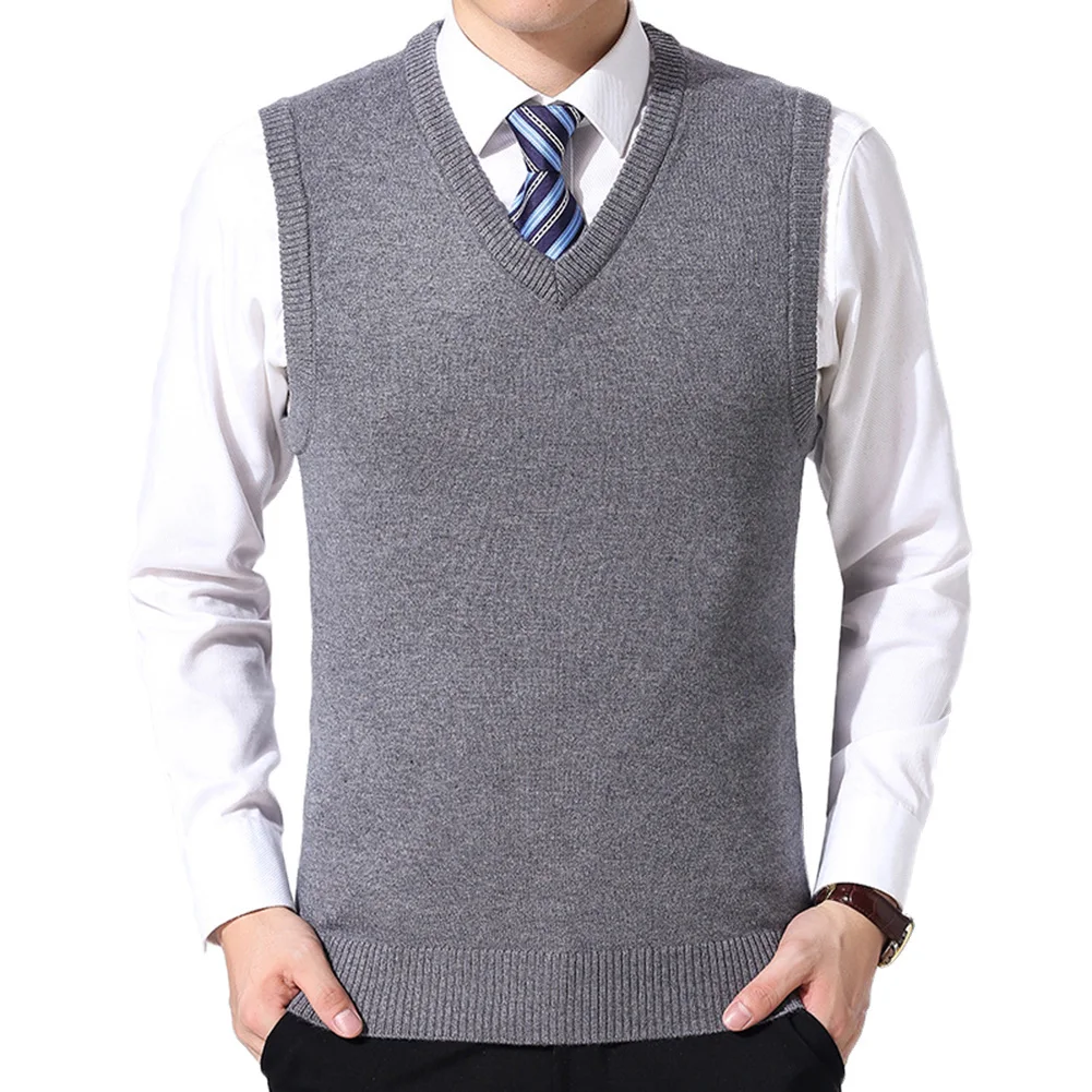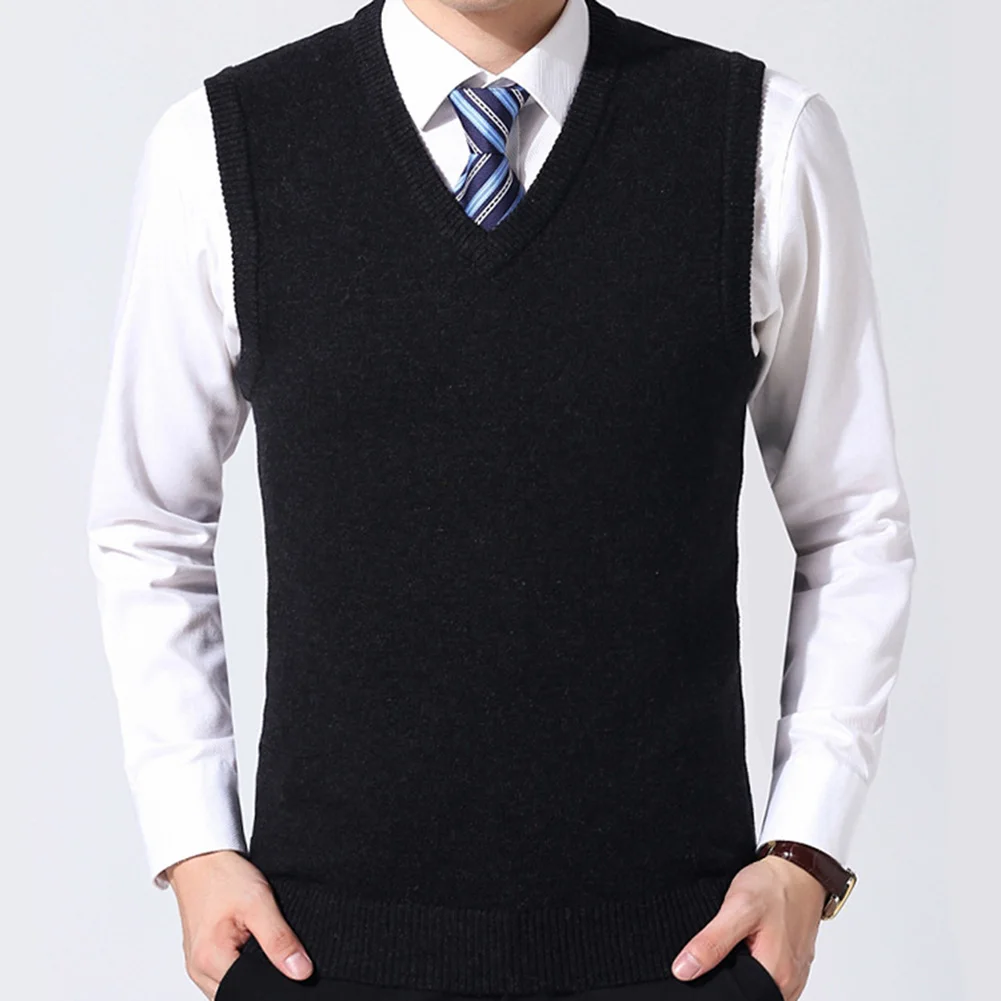 Лидер продаж! Мужской повседневный зимний однотонный вязаный шерстяной жилет без рукавов с v-образным вырезом размера плюс