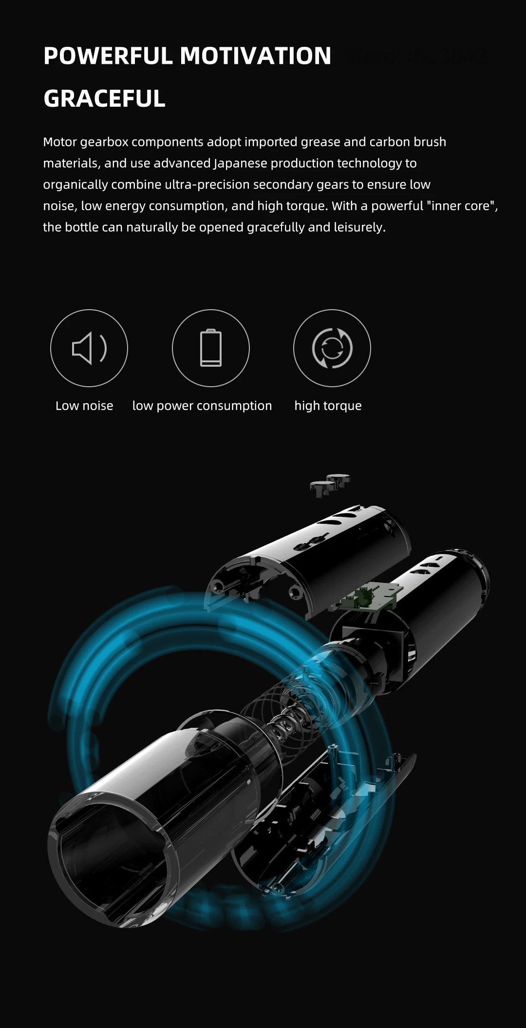 -[Быстро открывающиеся бутылки] : 6 секунд, чтобы открыть бутылку-[Простота в эксплуатации]: пример, всего одна кнопка для открытия-[Продолжайте открывать бутылки]: длительный срок службы батареи может открыть 70 бутылок-[Портативный дизайн]: Универсальный интерфейс, зарядка в любом месте