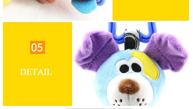 1. 100% новое качество 2. Яркие цвета и чистый звук 3. Слон, Лев, обезьяна, олень, собака, цыпленок шесть милых персонажей 4. Подходящий размер, подходит для ребенка, чтобы держать его в руке 5. Портативный, легко повесить и разобрать 6. Милые подарки для маленьких детей 7. Может сопровождать вашего ребенка в любое время и в любом месте Примечание: цвета крючков отправляются случайным образом