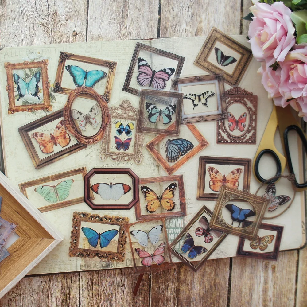 38 шт., наклейки разных размеров с изображением бабочек из ПВХ, стикеры для скрапбукинга, для самостоятельной упаковки подарков, декоративные ярлыки