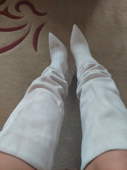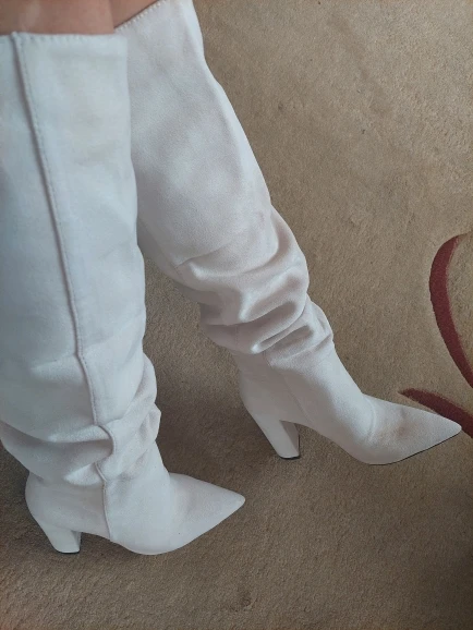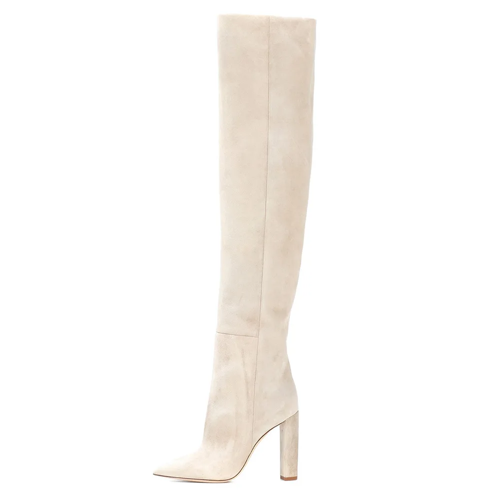 Женские сапоги выше колена из искусственной замши, бежевые высокие ...