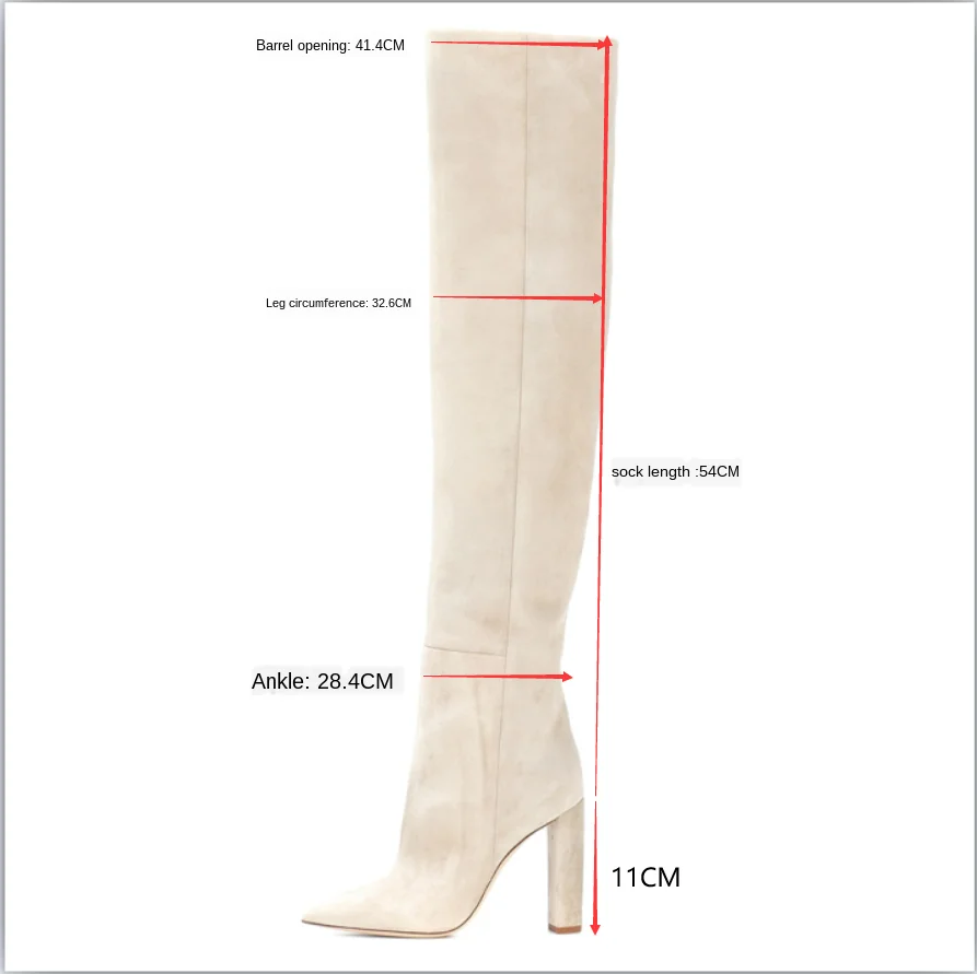 Женские сапоги выше колена из искусственной замши, высокие сапоги с острым носком, на массивном каблуке, высокие сапоги с напуском, женская зимняя обувь на каблуке