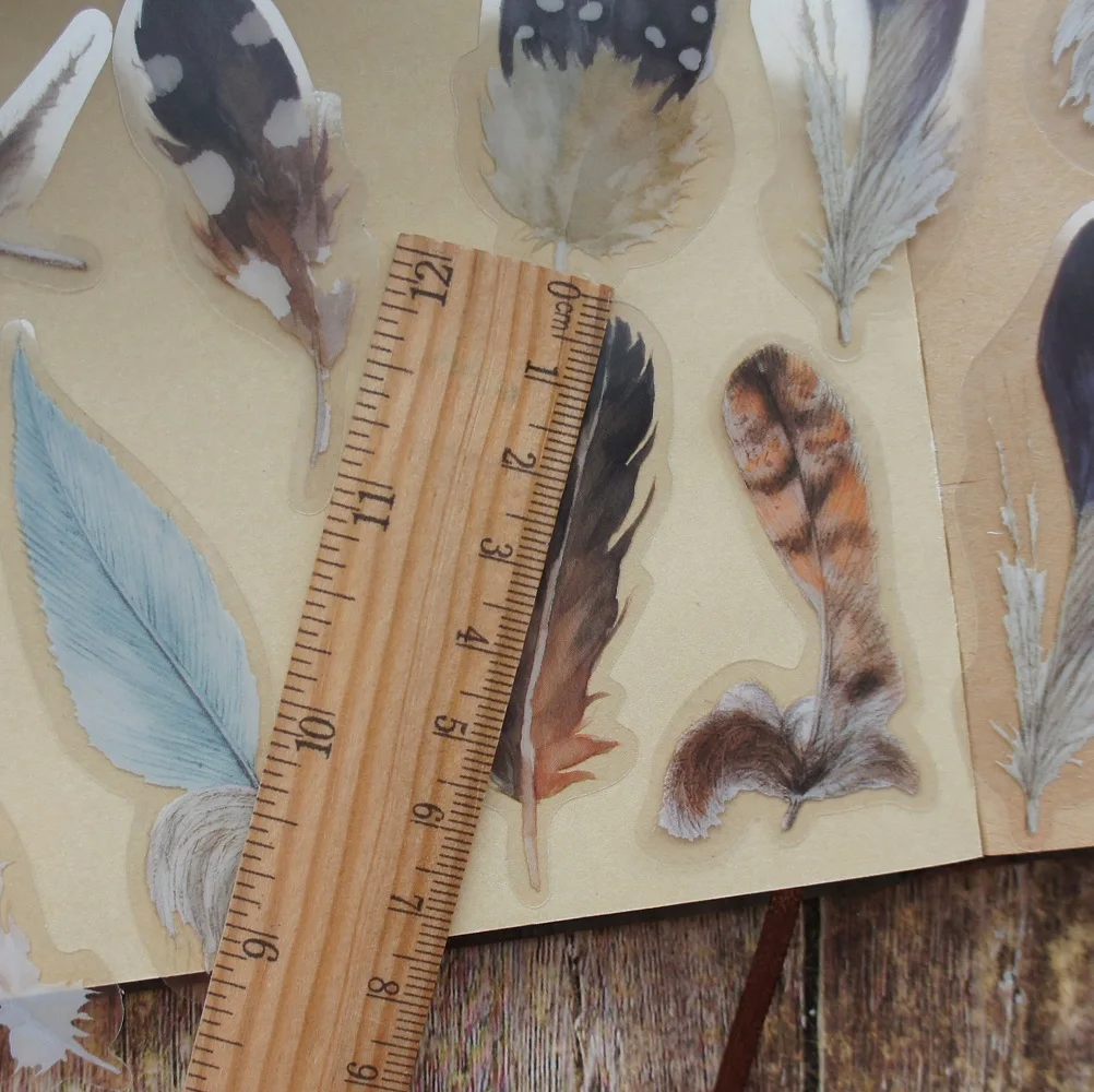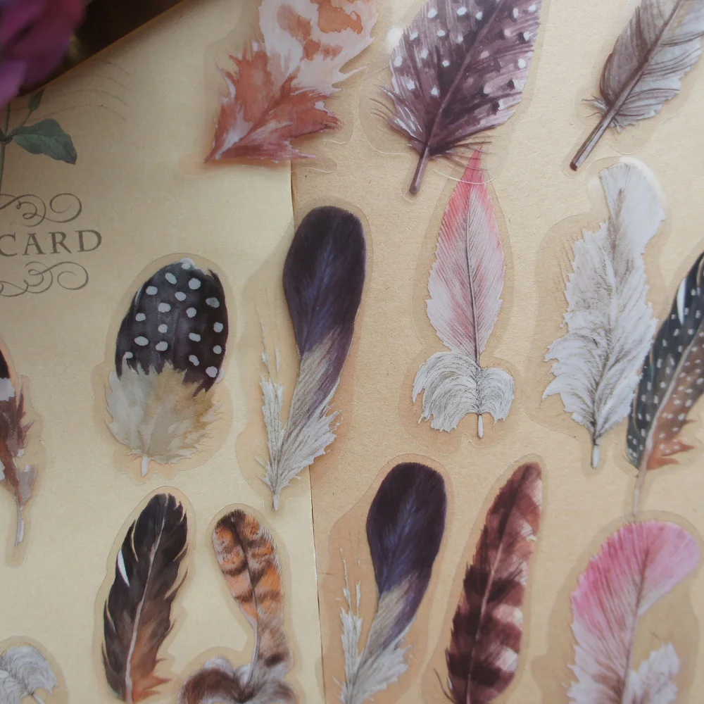 38 шт., разноцветные ПВХ наклейки в виде Летающих Перьев