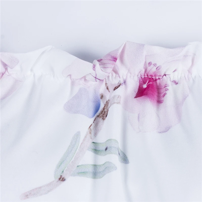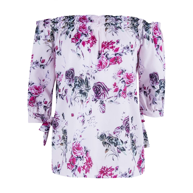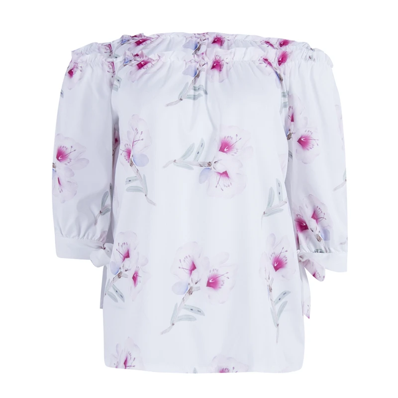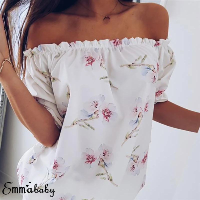Рубашка женская с открытыми плечами и цветочным принтом, повседневный Топ, пикантная блузка, рубашка с рукавом до локтя в стиле Харадзюку, с принтом, на лето