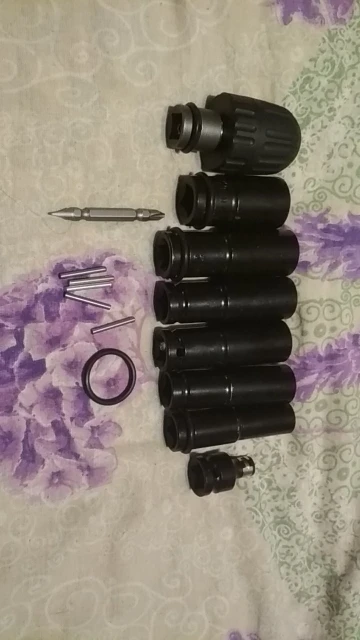 Получил набор головок, ну что сказать, вроде полный комплект, но мне кое что не понравилось.Резиновые кольца только двух больших размеров и подходят только на головки 22-21-19. Вместо 14 головки на 12. Благо в наборе с гайковёртом есть малое резиновое кольцо и искать не придётся. Как я понял по отзывал, комплекты вообще не проверяются, мелочёвку кидают на глаз.