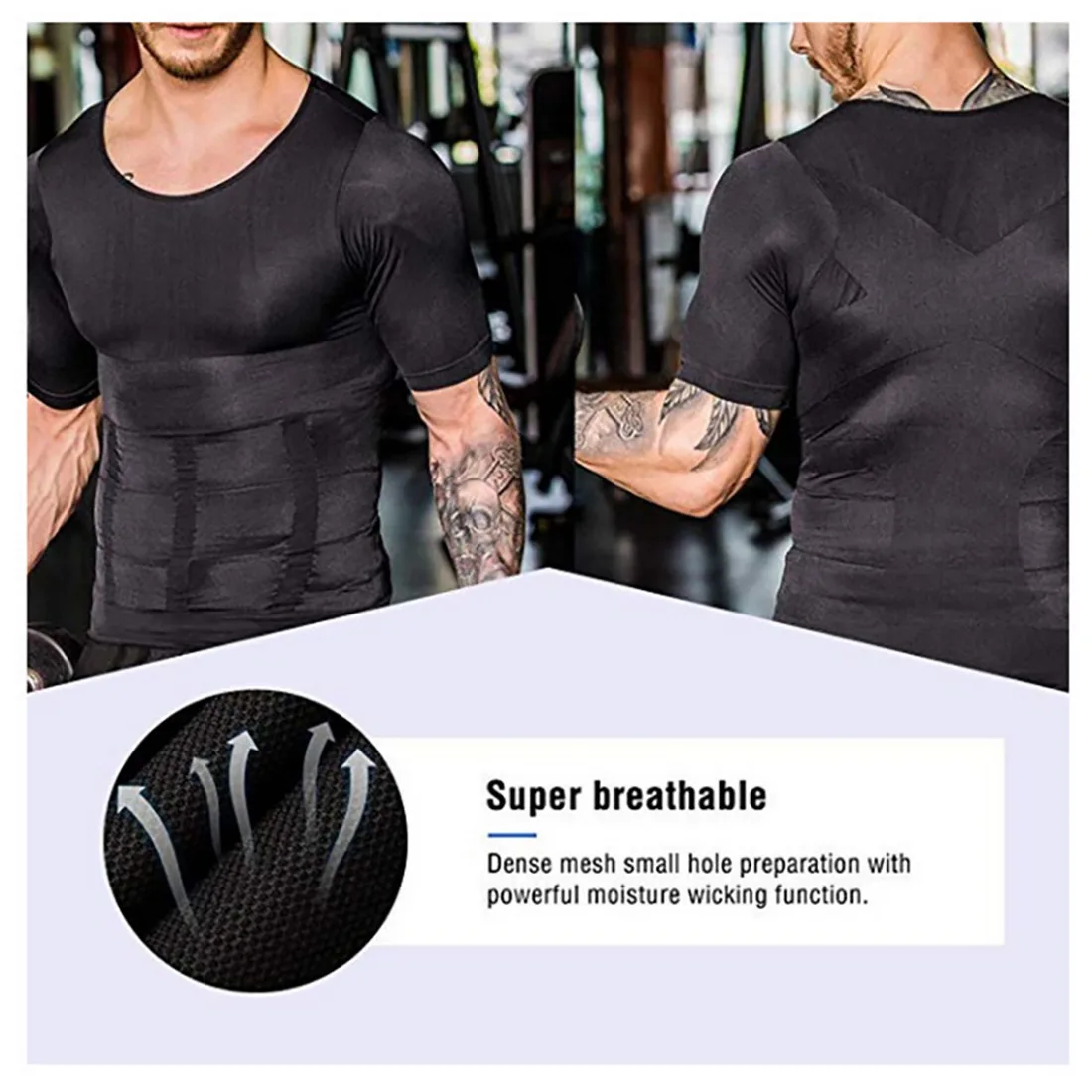 Мужская футболка, Тонизирующая фигуру, корректирующая рубашка для коррекции осанки, пояс для похудения живота сжигание жира на животе, мужской компрессионный корсет для сжигания жира