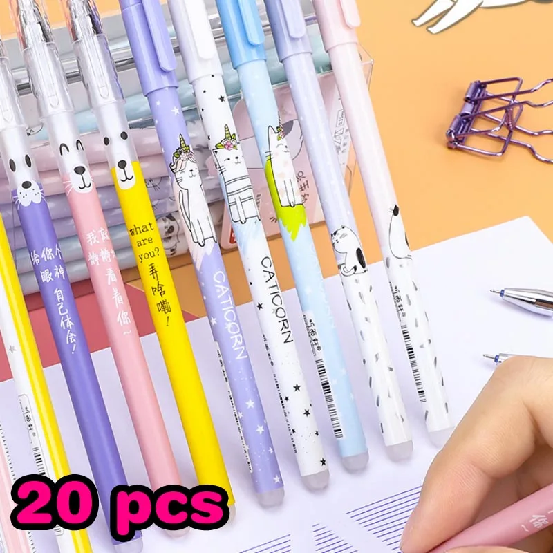 20 шт., фрикционный стирающийся набор гелевых ручек, 0,5 мм, гладкие чернила с шариковой точкой, школьные и офисные принадлежности, Jel Kalemler, подарок с Unicorn