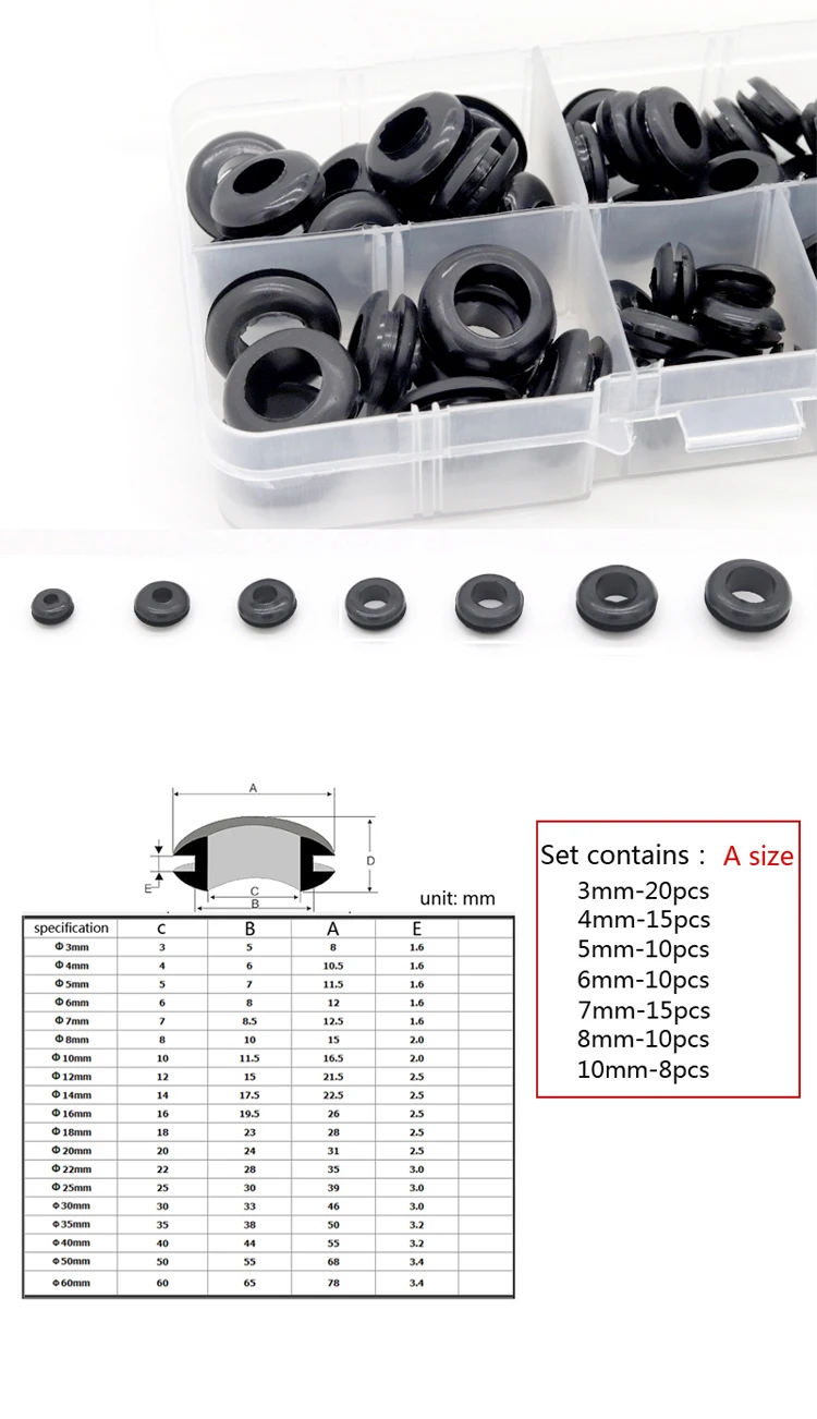 Резиновая втулка 8 размеров втулка прокладка для провода черного цвета набор в ассортименте набор прокладок для электрического провода