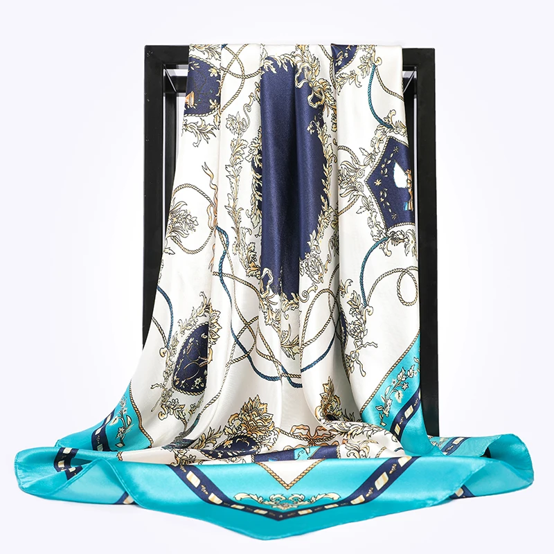 2022 90x90 см квадратные женские шарфы, шелковый шарф, Женская повя...